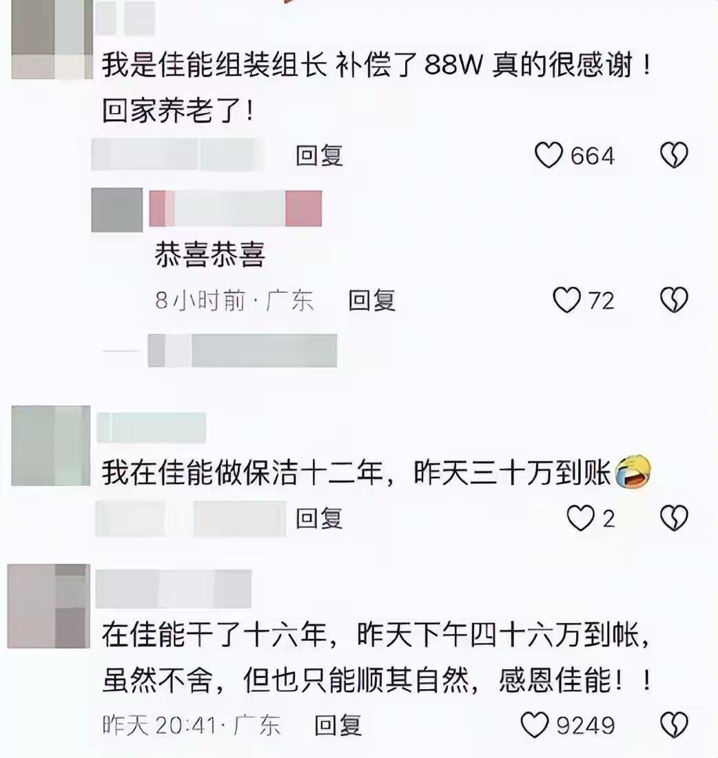 12月11日消息,此前中山佳能工厂停产,补偿方案引关注,网传为2.5N + 1等,远超劳动法规定。有专家称其为“恶意补偿”。如今,有员工晒63万到账截图,被抖音以炫富下架。对比一些国内企业裁员时调岗降薪等操作,佳能一直善待员工,此前也有高额补偿案例。与网红炫富不同,员工这63万是多年血汗钱。平台此举引发争议,大家羡慕的是企业对员工的尊重,平台应分清真分享和恶意炫富,莫搞双标。 评论: 这就很假,N+1只是一年补一个月,30年就补30个月工资,补88万那一个月工资几万块钱,也不是普通员工,中层管理级别了 感谢现代信息量和信息的多元化,是我们耳目一新,不再受愚弄,不再受蒙蔽,让我们普通老百姓在一个更高的视角看待世界!认清世界!明辨是非,独立思考!不再被舆论左右! 这种事说来确实打脸国内企业,本人在央企(国内500强),2017年企业内部调整,我所在的分厂取消,补贴就是N+1,而且我所在的央企的效益非常不错 老曹不是说过吗,员工工资太高不利于工作,真是良心的企业家,真是把钱都用在刀刃上, 当年国企粮食倒闭,黑龙江省鸡西市城子河粮食公司,按工龄买断,一年工龄五百块,干三十年的全民所有制企业“全民工”才给一万五千块。五十岁的人啦,剩下的社保都得自己交,再找工作年龄大没人要,多坑人啊。都说资本主义不好,但是人家企业高的是“人事”啊!。