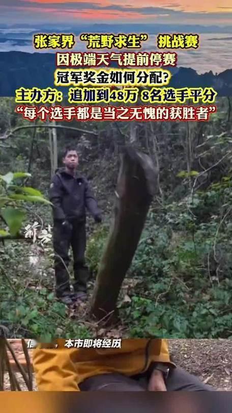 2025年12月12日,张家界七星山荒野求生挑战赛因寒潮提前终止。剩余8名选手被视为胜利者,平分48万总奖金,并获“超级VIP”权益,终身免费游七星山及张家界300+景区。景区还设立生态修复基金,承诺安全与生态并重。七星山荒野挑战 张家界户外求生