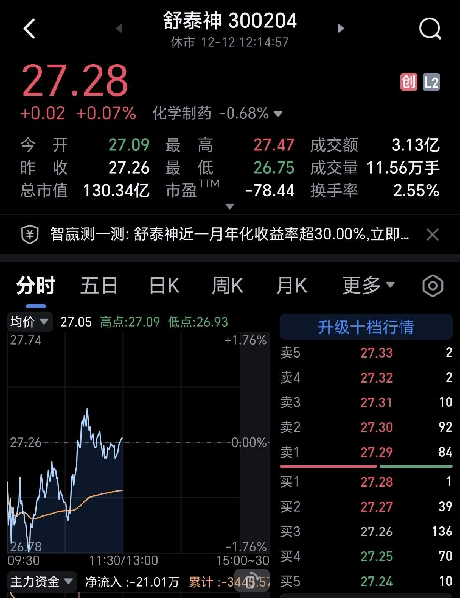 昭衍新药与舒泰神发生关联交易,一个涨停,一个只是微涨,两个公司,两个命运,这找谁说理去? 舒泰神已经很久没大涨了,估计很多散户等的心力交瘁了吧?