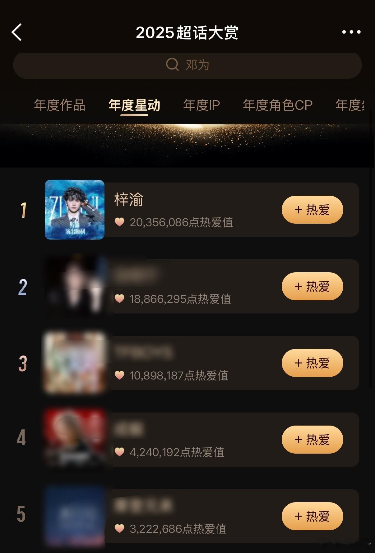 梓渝星光人物初选赛推荐值破万1000万 微博年终各项盘点榜单,梓渝都登顶了:🏆微博之夜年度星光人物 破1500w🏆超话大赏 破2000w🏆星品影响力『Top星品+新宣星品』双第一