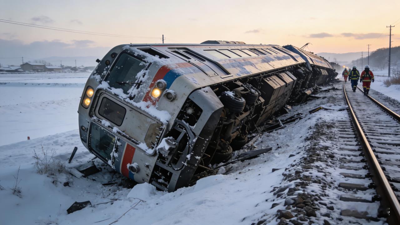 突发! 日本秋田县列车脱轨翻覆 清晨事故现场惊险万分。 当地时间12日6时50分,秋田县北秋田市萱草站附近,一列列车行驶中突然脱轨翻覆,初期驾驶员失联、乘客情况不明,瞬间引发全网揪心关注。后续救援传来消息,50岁男性驾驶员已被成功救出,意识清醒但受伤,万幸事发时车上无乘客,未造成更大伤亡。现场积雪8厘米,疑似铁轨倒伏树木引发事故,警方已介入调查,铁路安全再敲警钟,网友直呼惊险至极。