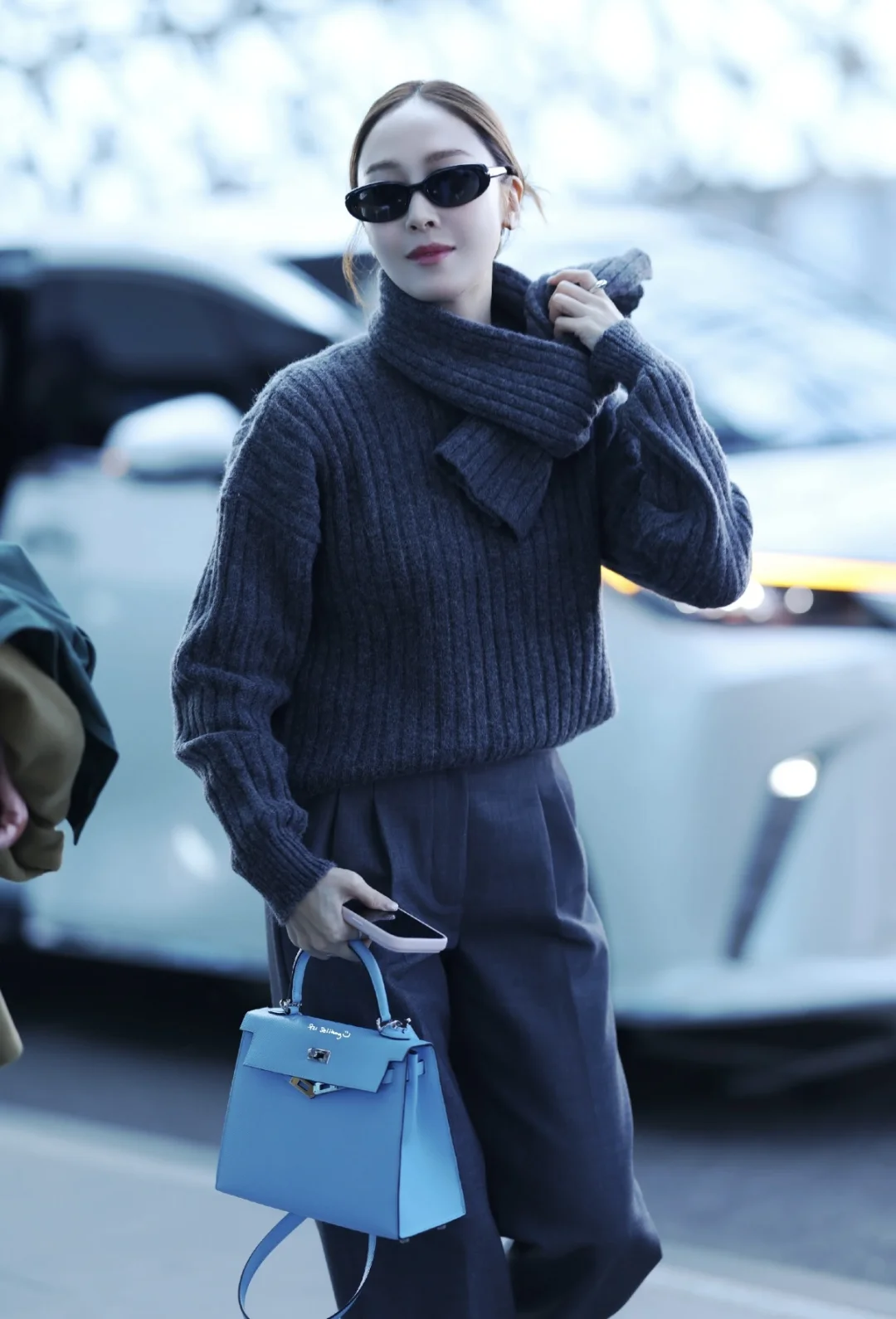 Jessica把“老钱风”穿成了日常通勤模板! 这套全灰look看似简单,其实全是小心机: ▫️毛衣选“自带围巾款”,懒人福音+自带氛围感; ▫️阔腿西裤选垂感面料,遮肉又能中和毛衣的软塌; ▫️亮蓝色包包是灵魂!冷调灰里加一抹亮色,贵气又不沉闷,运动鞋让整套更松弛。 普通人学老钱风,记住“同色系+质感对比+1个跳色配饰”就够了!