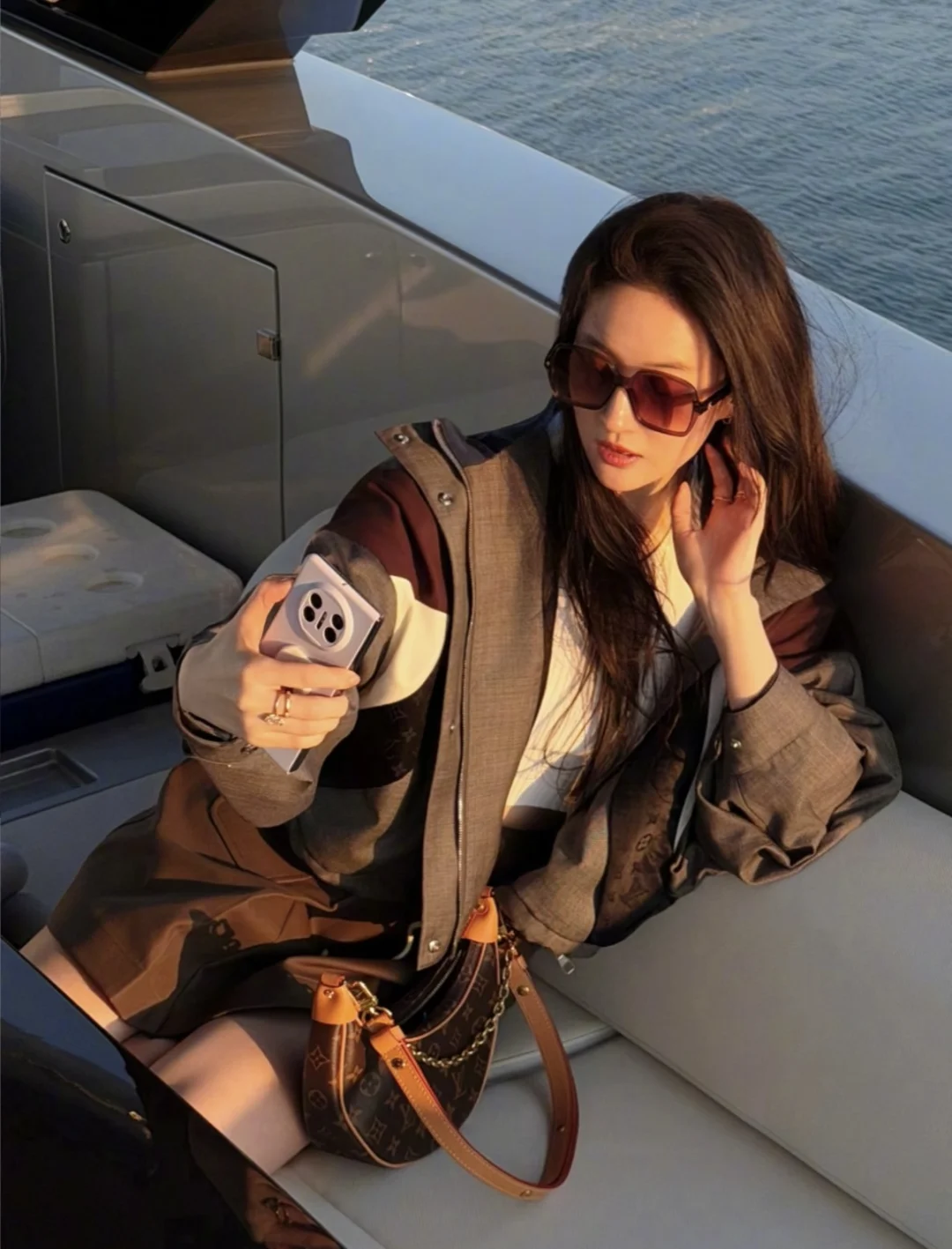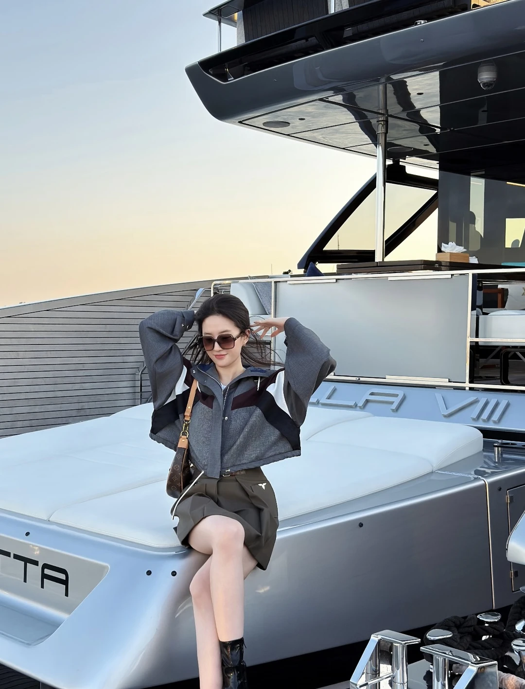 天仙把Lv穿得比我穿快时尚还日常… 两套look都戳中我: ▫️棕灰拼色卫衣+短裙:同色系顺色太高级,短款露腰+抽绳细节,休闲又不垮 ▫️黑牛仔+微喇裤:复古甜酷挂,硬挺外套中和牛仔裤的软