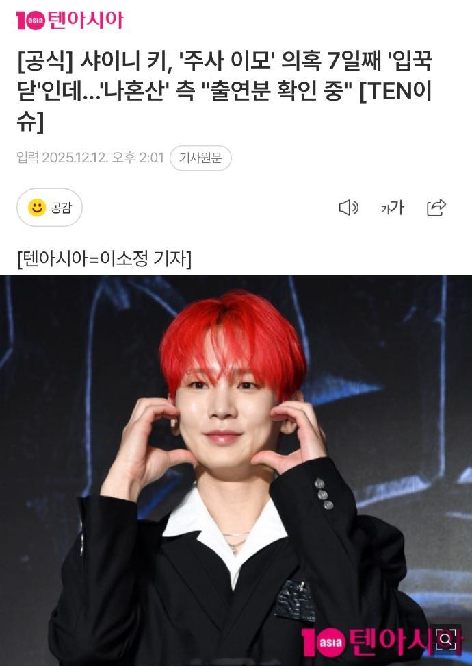 Key卷入非法医疗注射风波 Key (金起范) 于本月 6 日卷入了与“打针姨母”长期保持亲密关系并接受非法医疗注射的嫌疑,针对他是否会继续出演 MBC 综艺节目《我独自生活》,MBC 方面给出了“正在确认中”的立场。