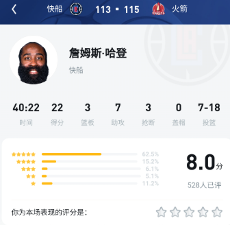 关键时刻三分三不沾,UC直播间评分区球迷指出哈登总在关键时刻掉链子