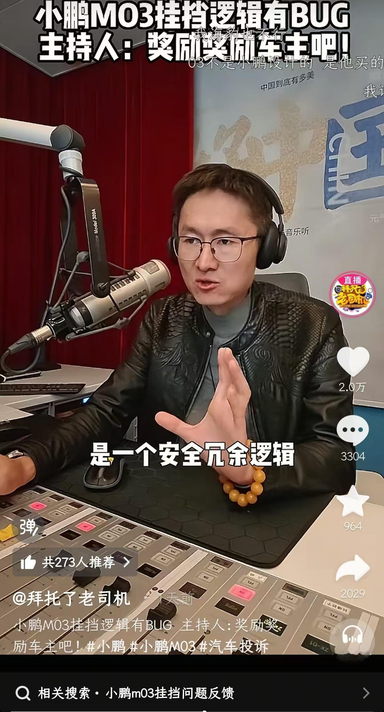 小鹏MONA M03的挂档逻辑似乎和其他车有些不一样,昨天看到一个视频,MONA车主说自己的小鹏在下拨挡位再踩下刹车后会自己开动,而其他品牌的车如此操作并不会有任何反应……因为我们在开车时正常的操作逻辑,都是先踩刹车再挂挡,就是为了避免误操作。而且这个问题只存在于MONA,其他小鹏车型都没有类似情况,不知道小鹏有没有注意过