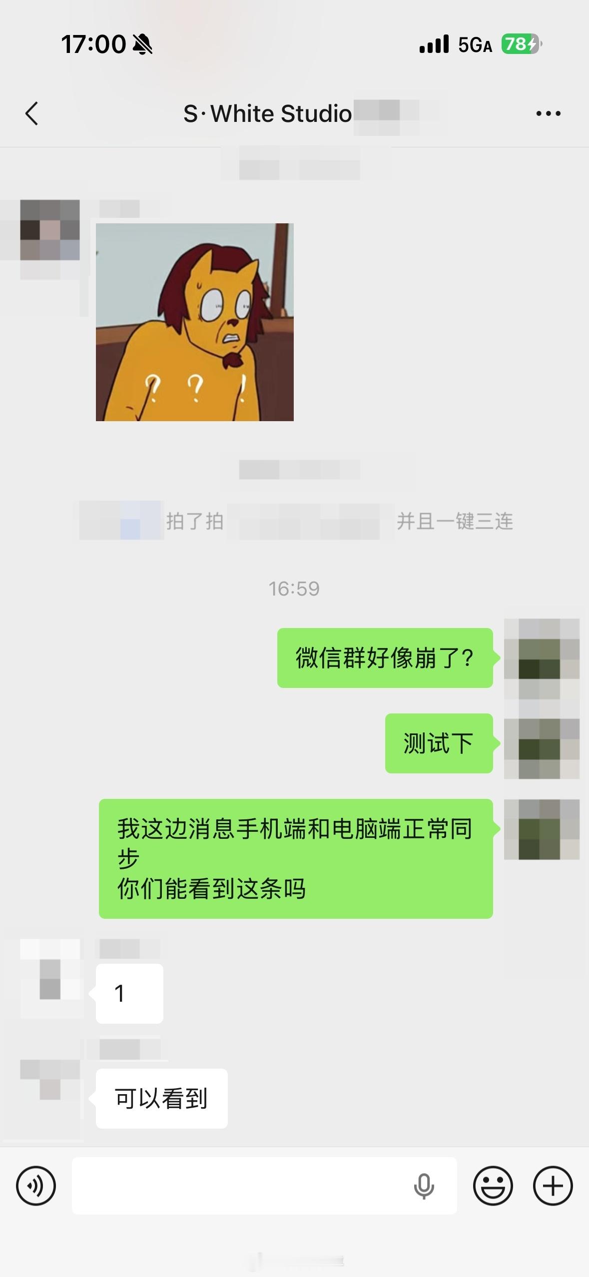 微信群崩了刚试了下好像没有崩?消息正常发送 并同步双端设备群友也可以看到消息大家微信群崩了吗