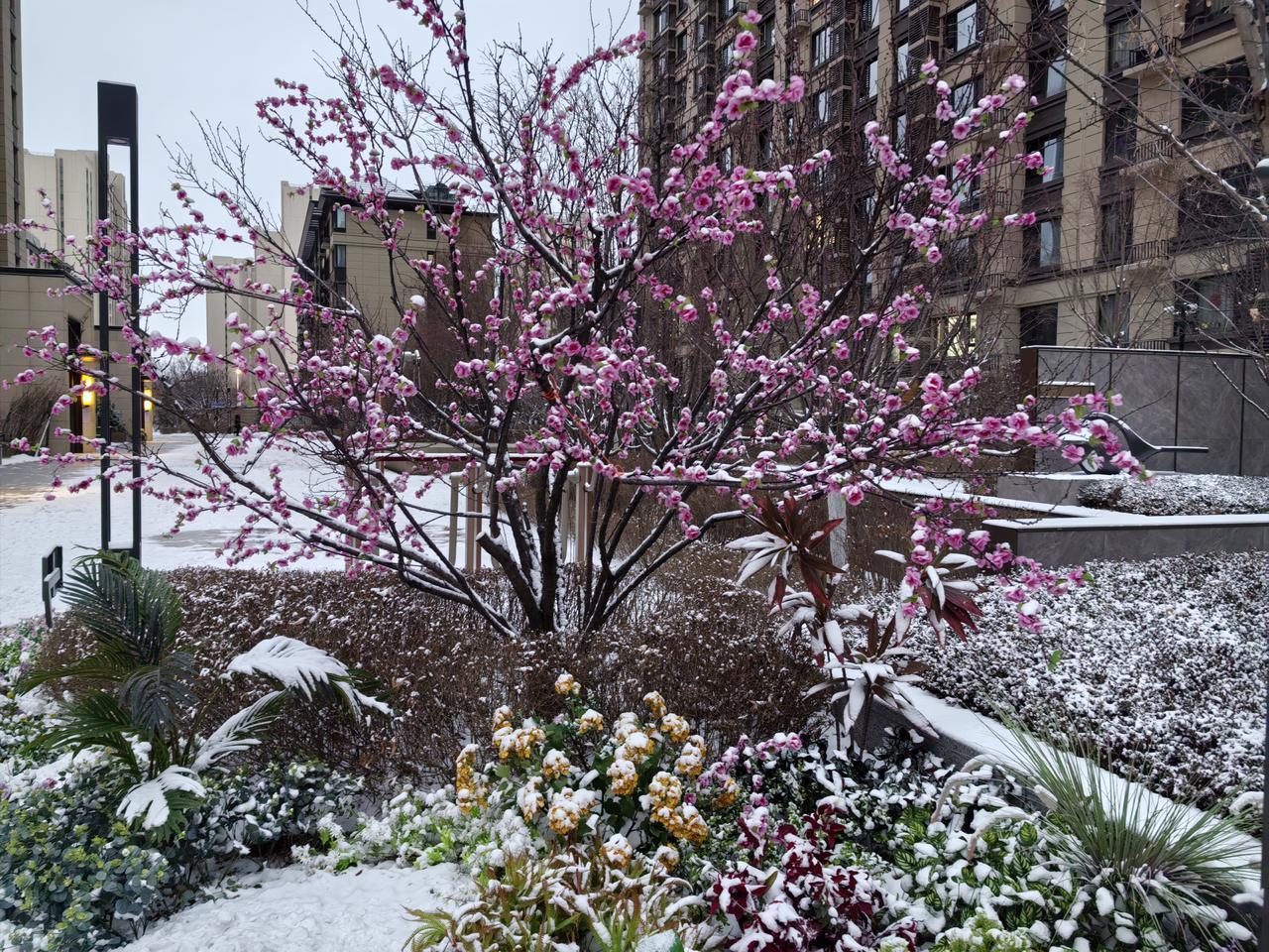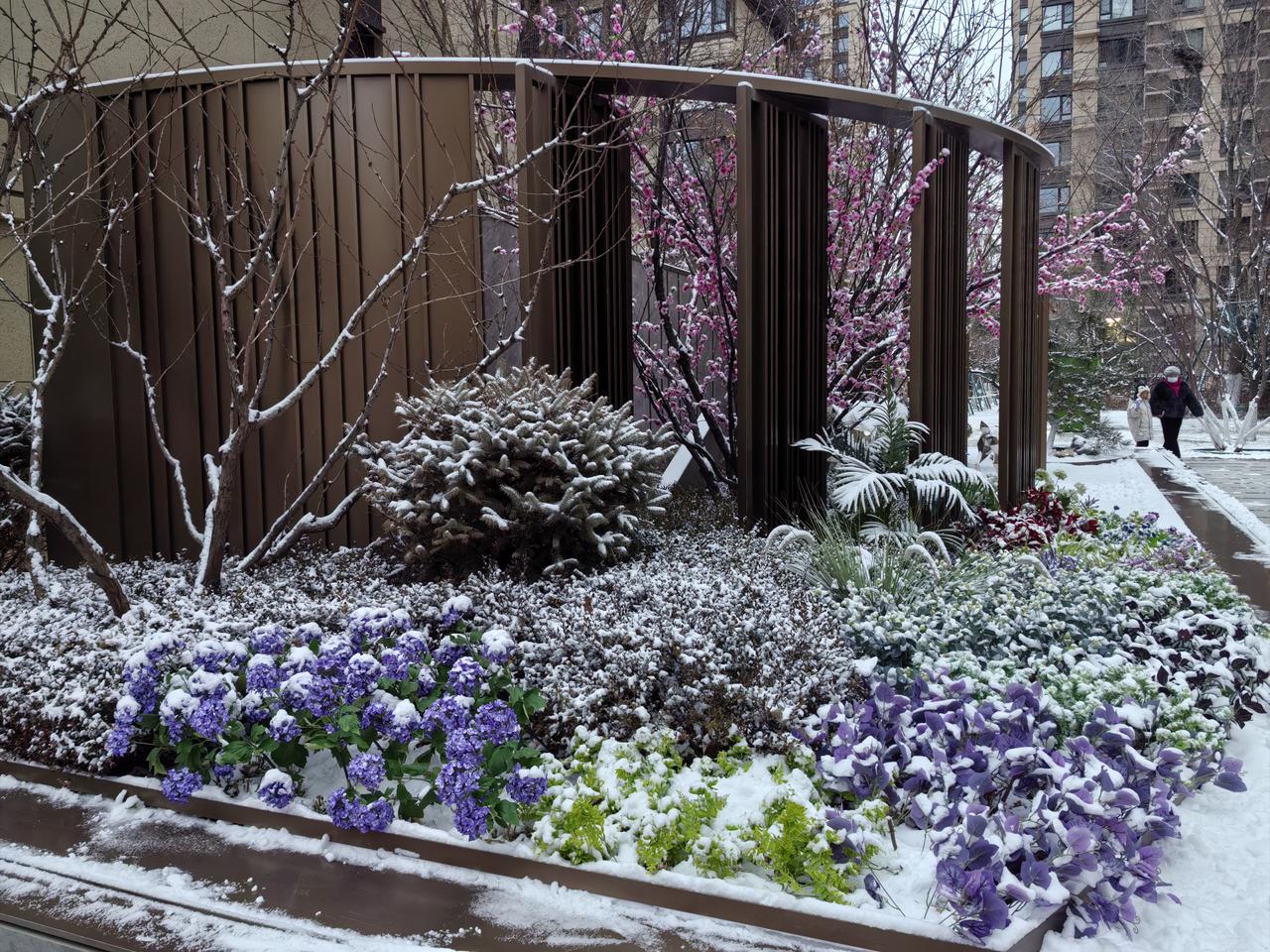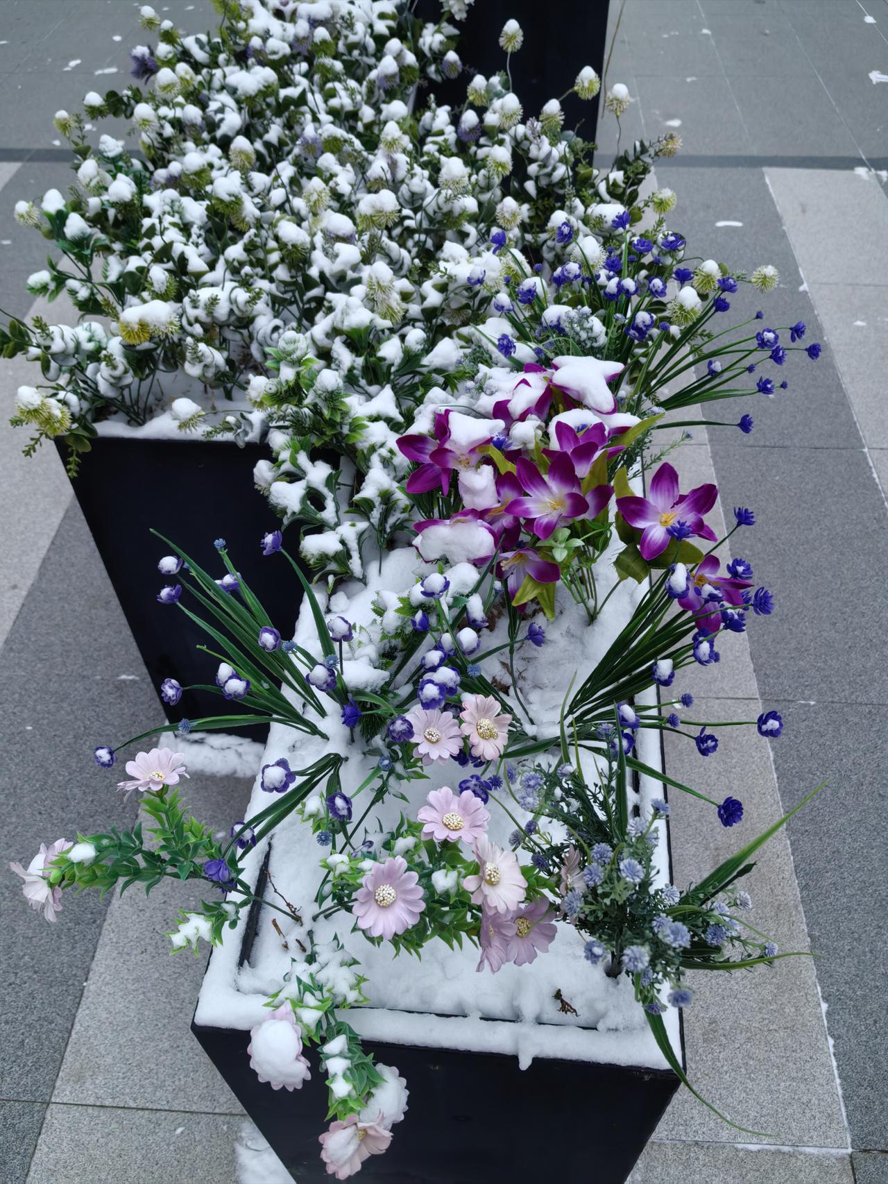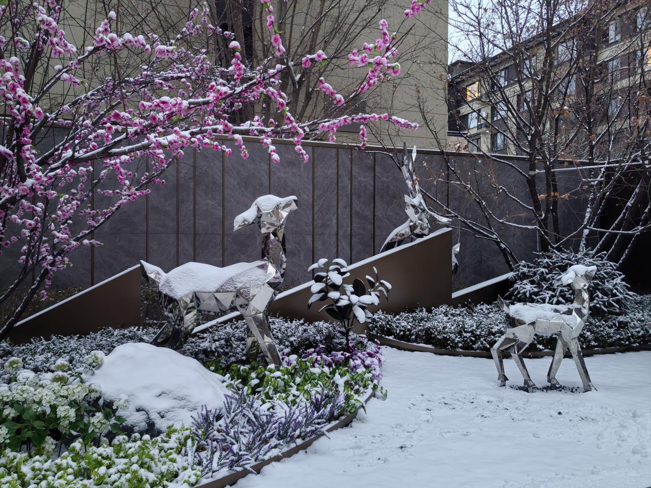 呼和浩特迎来入冬以来的第一场大雪,小区的景色也很美,银装素裹,再加上人造的红花绿叶,煞是好看!物业对道路积雪的清理也很及时,辛苦![作揖][作揖]