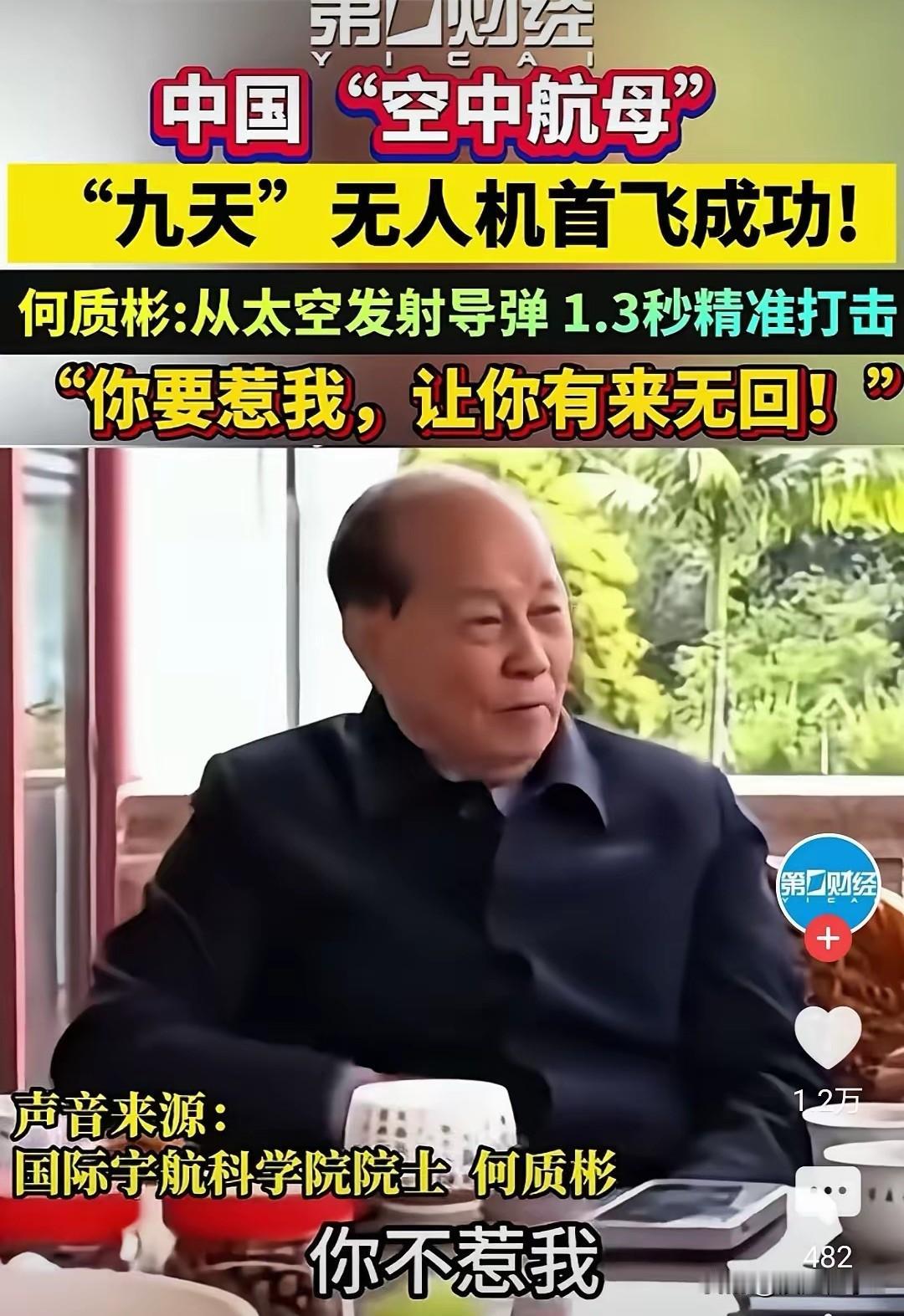 国际宇航科学院何质彬院士对它的威慑力说得很实在,太空发射导弹速度跟眨下眼似的,也就1.3秒,没人能拦住。他直言不惹中国就相安无事,要是敢挑衅,肯定让对方有来无回。这实力可不是虚的,机身带8个外挂点,还能装下上百架小型无人机,打击能力实打实够劲。 此前这无人机在航展亮相就吸足目光,这次首飞成功是技术持续突破的结果,后续大概率会加快军民两用部署。现在还有些洋鬼子小鬼子在那瞎嘚瑟叫嚣,其实心里门儿清,咱们这硬实力已经让他们没多少底气,只是嘴硬撑场面,根本扛不住真正的威慑。 就看这些叫嚣的主儿啥时候能认清现实。