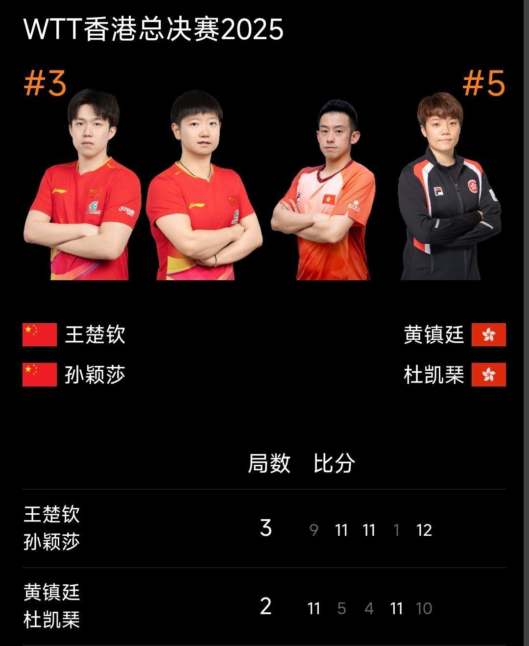 孙颖莎/王楚钦小组3连胜晋级半决赛! WTT香港总决赛2025 混双小组赛,国乒孙颖莎/王楚钦以大比分3比2惊险战胜东道主中国香港组合黄镇廷/杜凯琹,取得小组赛三连胜,以小组第一晋级半决赛! 根据规则,半决赛将对阵第二组的第二名! 恭喜!