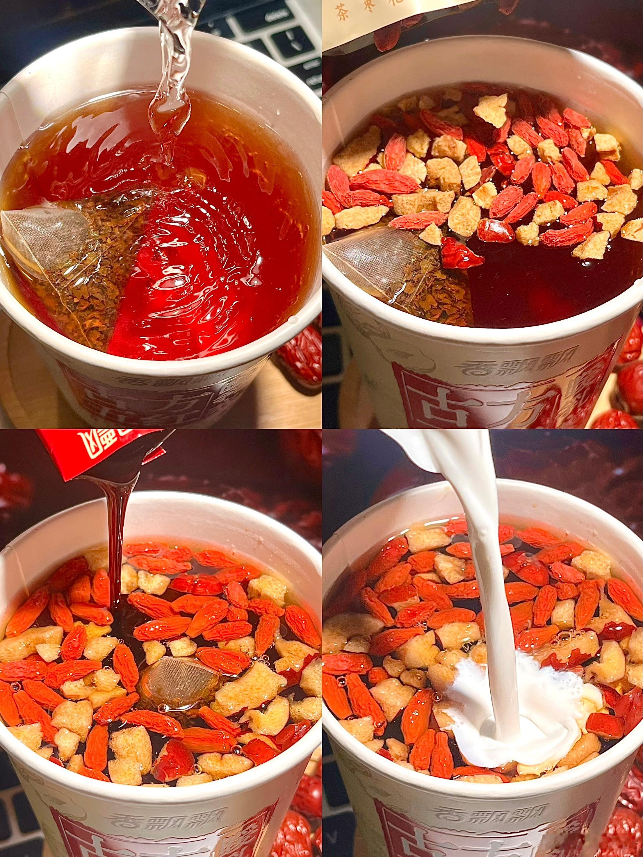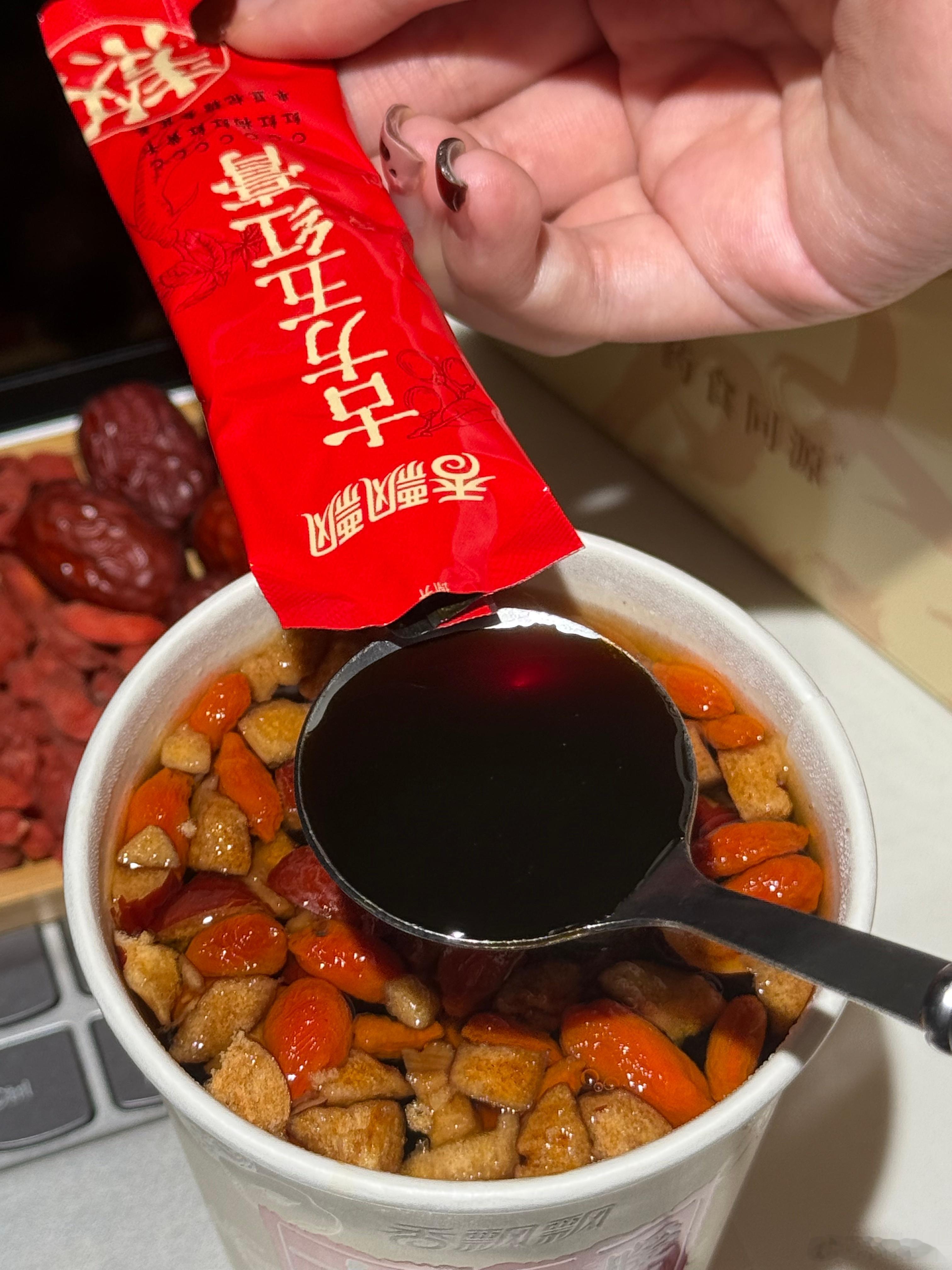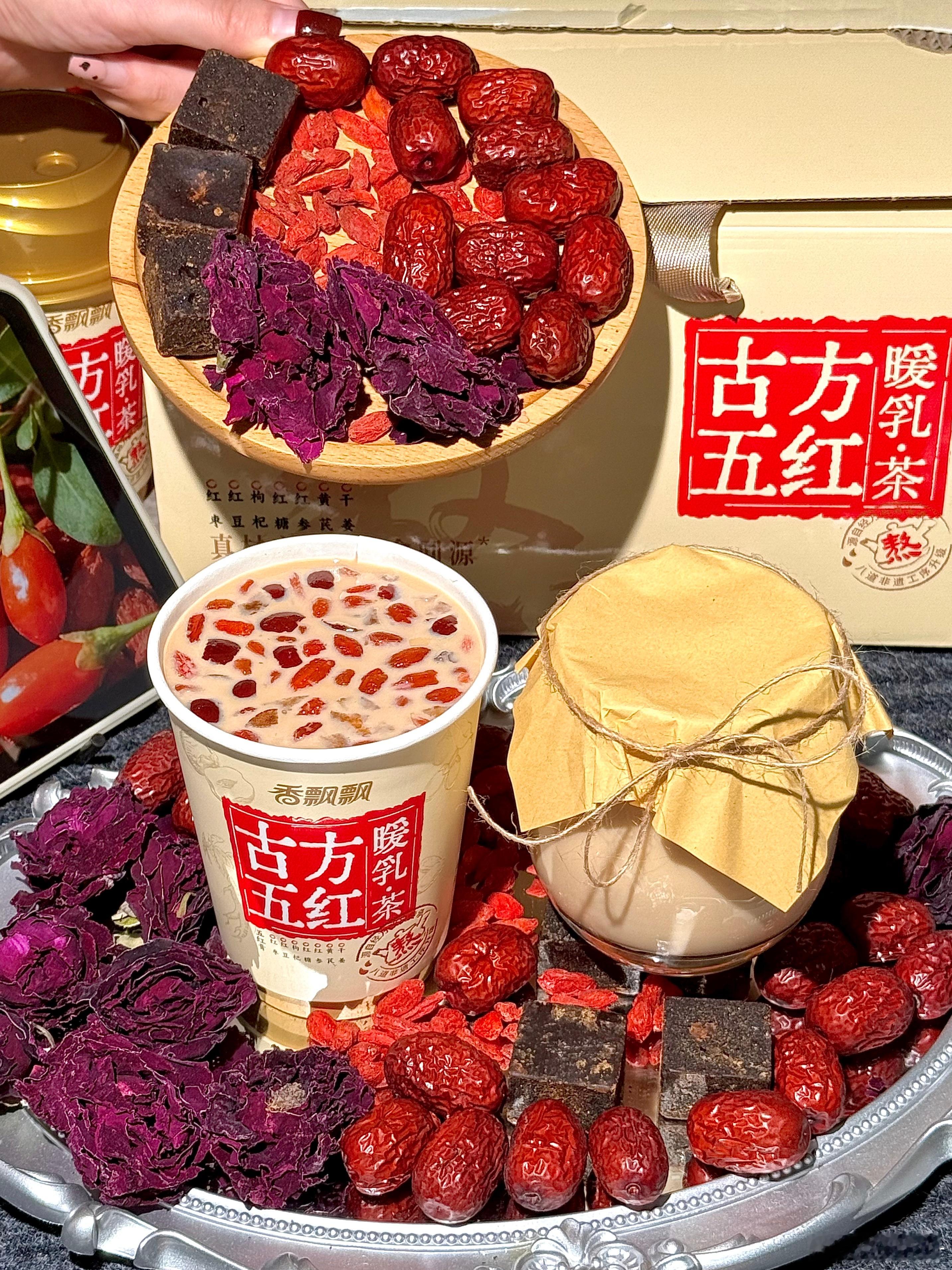 谁懂姨妈奶茶的救赎感痛经星人狂喜!这杯姨妈奶茶比男朋友还靠谱被闺蜜按头安利香飘飘古方五红暖乳茶!拆开就被配料表惊到——甘肃当归、长白山红参、宁夏枸杞、新疆红枣,全是实打实的食材还加了黄芪当归汤的古方底子,老字号提供技术支持~这配置太用心啦开水一冲就行红枣和草本的香气扑鼻而来~入口甜甜的,丝滑的奶香混着枣香,还能嚼到枸杞和枣肉颗粒,喝完从喉咙暖到小腹,生理期那种坠胀绞痛感真的缓解了好多~立马自己给囤了两箱还给闺蜜和妈妈都安排上了!经期不用硬扛,喝杯暖乎乎的奶茶,方便又管用~