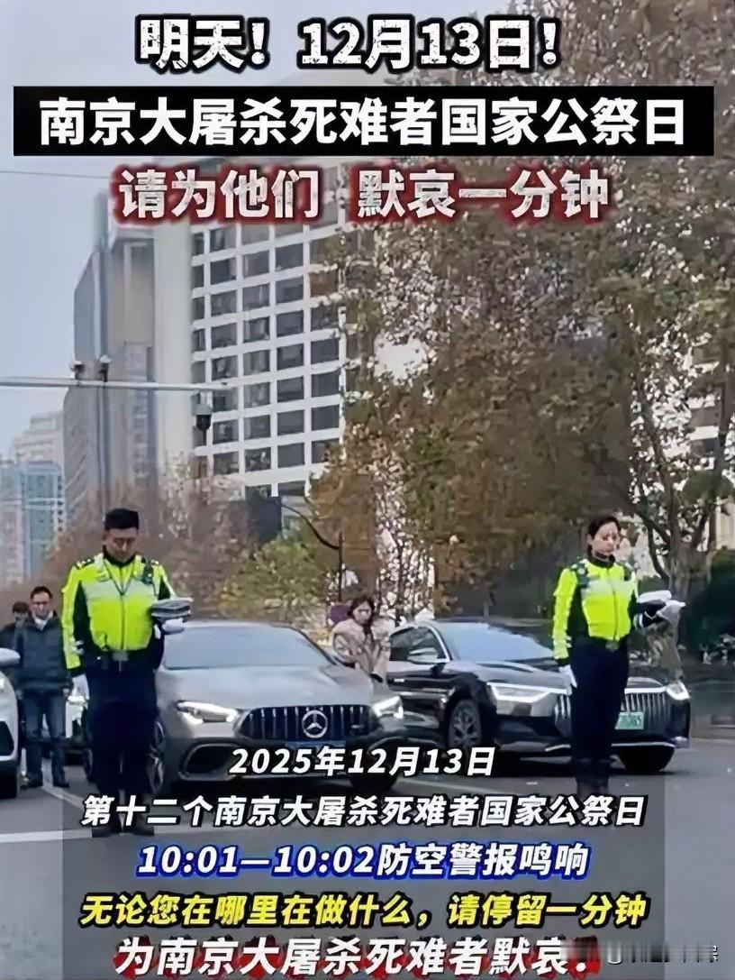 明天,12月13日! 这是南京大屠杀死难者国家公祭日。 让我们为死难者默哀一分钟! 在第十二个南京大屠杀死难者国家公祭日,10:01—10:02防空警报将鸣响。 无论您身在何处、正在做何事,请停下脚步,默哀一分钟。 为南京大屠杀死难者致哀! 血海深仇,铭记于心!警醒后世,忘战必危!侵华日军大屠杀 南京大屠杀 日本鬼子大屠杀 上海南京大屠杀 反人类大屠杀 国家公祭日 国祭日南京 第十一个公祭日 徐州大屠杀 沈阳大屠杀 公祭日 镇江大屠杀 国家公祭日 国祭公祭日 9.18公祭日