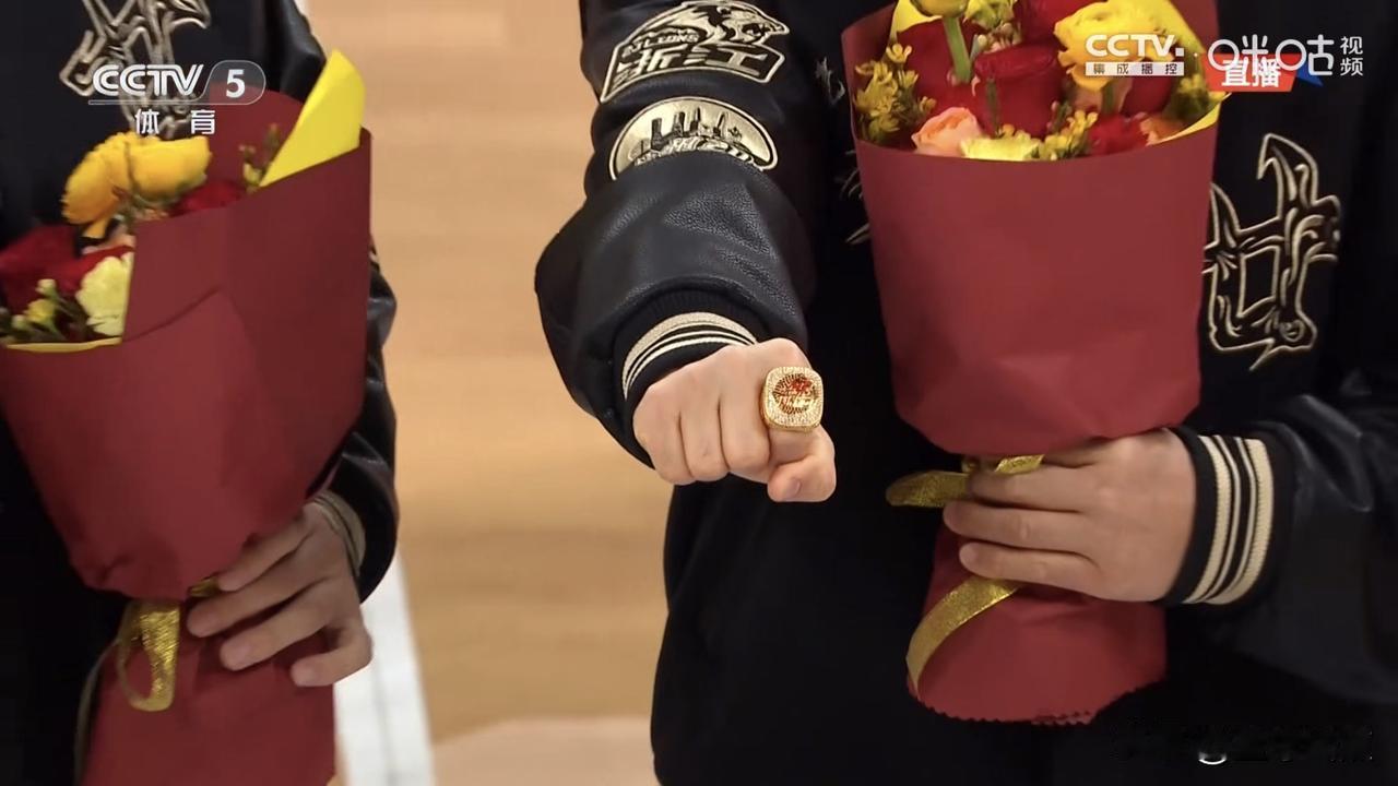 一起见证浙江广厦队历史首个CBA总冠军 今天是新赛季揭幕战,赛前颁发总冠军戒指。