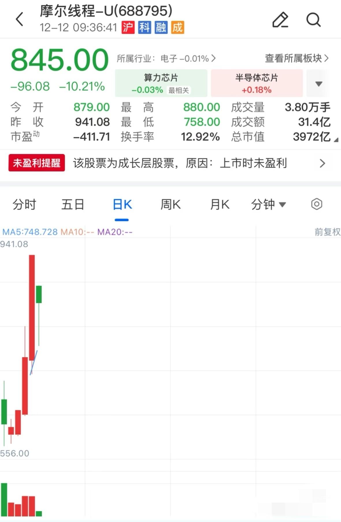 摩尔线程跌超15%。 前几年英伟达吃到ai红利大爆发的时候,pe最高冲上过144倍,现在寒武纪都有270倍了,你们觉得摩尔有几倍,反正我准备笑看空中飞人了。