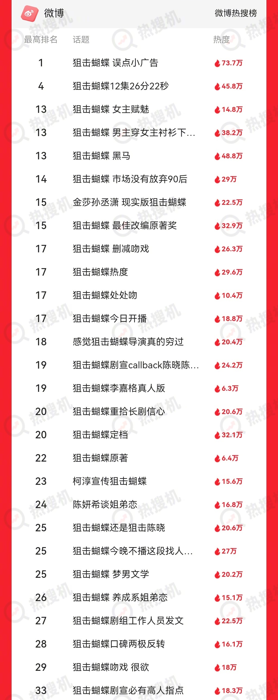 《狙击蝴蝶》热度算不算超预期?明明是A级小成本剧,热搜却天天见,架势碾压不少S+