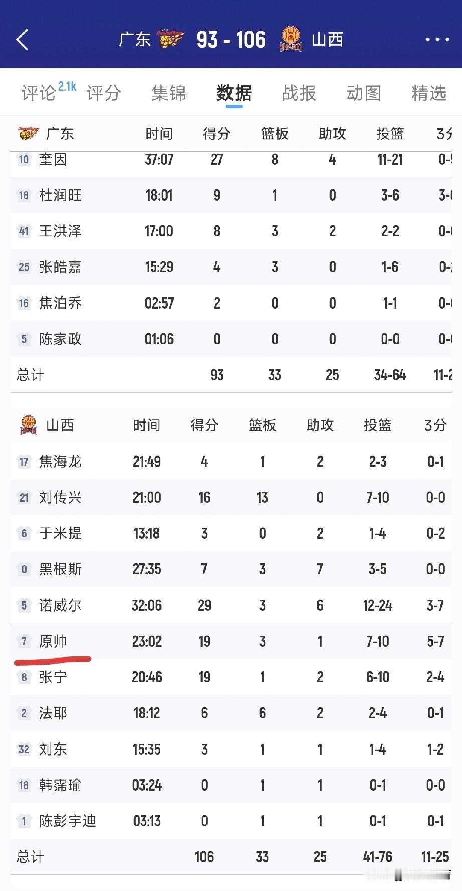 广东队外线的杜润旺、张皓嘉防守有多差,看CBA揭幕战原帅的发挥就知道了,表现差距怎么能有这么大? 面对广东队,杜润旺、张皓嘉在外线追防他,原帅的三分投的跟库里一样,怎么投怎么有,一场比赛不进5个三分,好像都不合适。 而当原帅面对到广厦时,有朱俊龙、布朗、孙铭徽等人的外线防守,原帅在外线出手一次都不容易,表现可有可无。 所以,广东球迷恳请杜锋指导,在防守端,千万要慎用杜润旺、张皓嘉,他们俩人的防守,完全属于人见人欺!