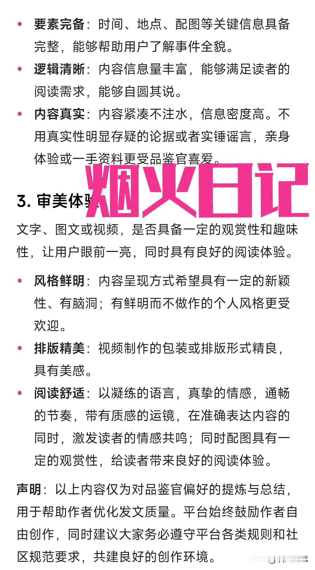 你的作品发布的流量原来是受这个控制,你还不知道吗? 我这一久每天都会更新作品,但有点太难了,作品不管写什么都没有一点流量,心理着实有点担忧了,毕竟昨天才申请上“头条新锐创作者”这个称号,真的有点担心照此下去被收回了怎么办。 本来我是一点都不慌,因为我并没有特别关注逊色的流量,只想着每天坚持更新就可以了,相信总有一天平台会关顾到我的。自从有了这个称号后,心里就像有了压力,觉得我一定要对得起这个称号。但似乎有点让大家失望了,连续几天的展现量都没有过千,有点沉不住气了。于是我就想问问客服,客服问我有没有收到作品被审核的通知,我说没有;客服说那账号就是正常的,让我坚持原创。过了一会,客服给我发了一条消息,让我点开看看,直到今天我才知道作品流量是受这群人控制在。 平台上还有一个特殊的群体,他们就是“内容品鉴官”。以前有见过这个群体,但不知道他们具体的工作,看了这个介绍才明白其中的道理。首先优质作品要具备这几个条件,信息价值、传递效率、审美体验三个维度进行审核,如果他们觉得你的作品符合这几个条件,他们会点击是否推荐。文件上介绍他们是平台内容的选择者、定义者、判断者,足以证明我们的内容是需要先经过他们审核后,才判断是否值得推荐。难怪这几天我都发现一个奇怪的现象,就是我的每个作品最先都是1阅读,然后就一直停在那里不动了,原先我以为是受到了平台的限制,这样看来那1个阅读应该是内容品鉴官看的。 看样子这个文件上的内容我还得多花时间去研究、去分析,争取把上面的内容理解透彻。希望审核到我这篇头条的“内容品鉴官”手下留情,也该雨露均沾了,让我也体验一下99+的感觉。这里先谢谢你这位品鉴官了[比心] 上次我发了一条“平台上创作者多半都是中年人”,没想到该稍微小火了一些,看样子这个群体还真的挺受欢迎的。是不是平台上的“内容品鉴官”都是这个年龄段的人,你们都是值得尊敬的对象、也是值得学习的对象。 你们了解过这个“内容品鉴官”吗?欢迎留下你们的声音,让我一起学习、一起互动!
