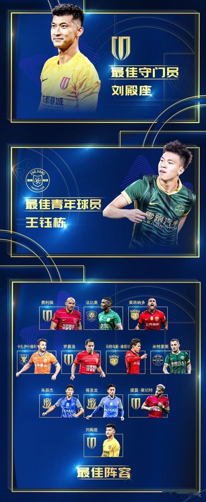 这个结果你服气吗? 最佳球员:卡扎伊什维利(山东泰山) 这个可以接受,不仅仅是因为他曾经多场帽子戏法或者大四喜,更是因为曾经一度他一个人扛着泰山前行,所以中超最佳球员,可以接受! 最佳射手:法比奥28球(北京国安) 这个也没法不服,毕竟数据在那里,28个球,进球数在那里摆着呢,所以,说的过去! 最佳教练:丹尼尔·拉莫斯(河南) 拉莫斯的带队表现谁都看到了,不仅仅让河南队成功保级,更是让河南队第一次打进决赛,虽然最后还是没有摸到冠军!不过很多人对这个选项不满意的是有人认为他是半路上任,并没有带满整个赛季,很多人认为于根伟、徐正源或许更适合最佳教练,不过拉莫斯也基本让人赞同! 最佳守门员:刘殿座(成都蓉城) 他的数据还算突出,在王大雷、颜骏凌等守门员的评比数据中,刘殿座的丢球是最少的,他的表现也是稳定的,所以整个能接受。只是也有别的表现不错的门将,但是因为所在的球队实力较弱,最后没有被评选,比如王国明、降级的亚泰的吴亚轲等。 最佳青年球员:王钰栋(浙江) 这个不说什么了~ 最佳阵容:刘殿座(成都蓉城)、提莫·莱切特(成都蓉城)、蒋圣龙(上海申花)、朱辰杰(上海申花)、卡扎伊什维利(山东泰山)、米特里策(浙江俱乐部绿城)、罗慕洛(成都蓉城)、马特乌斯·维塔尔(上海海港)、法比奥(北京国安)、莱昂纳多(上海海港)、费利佩(成都蓉城) 11个人员,8个外援,好歹还有3个本土球员! 金哨:金哨 李海新(广东)、银哨 唐顺齐(成都)、铜哨 傅明(北京) 呵呵,呵呵,瘸子里找个瞎子,瞎子里却找那些最瞎的来领奖。你说这几个是金哨、银哨、铜哨,我不知道评委是不是夜里戴墨镜找墨汁,真的是一片黑!你说咋找的。要我说评选这个选项就是个错误,整个赛季,问题最多的就是裁判,被骂的最多的除了中国足协估计就是裁判了。其实,还不如这个奖项空缺呢! 金旗:金旗 周飞(上海)、银旗 张铖(上海)、铜旗 国景涛(山东) 这个不了解,不发表评论。因为这些人就连在电视上都经常看不到,更是不认识!