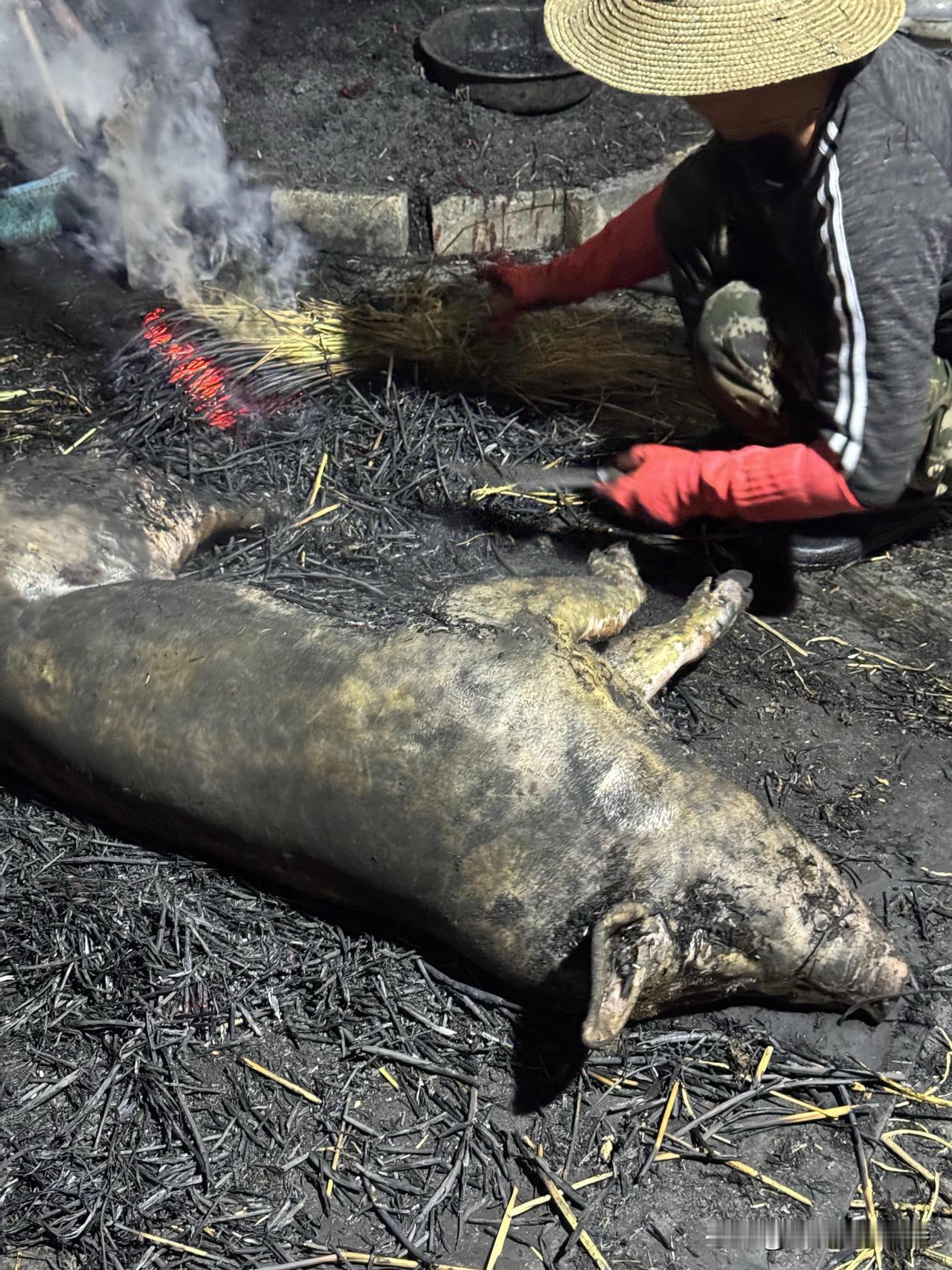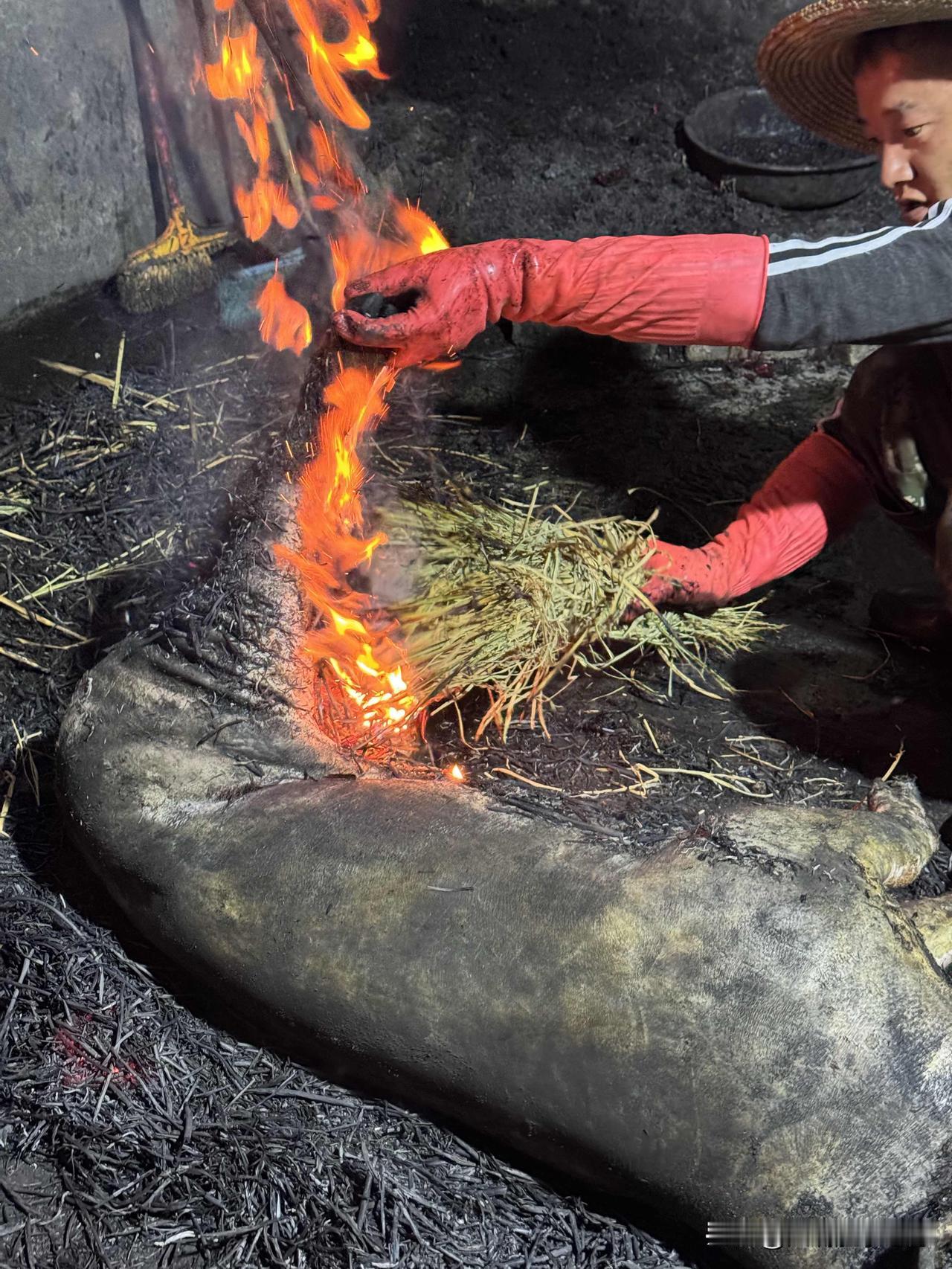 这是我见过最生猛的美食,云南保山火烧猪,本地老品种生猪,稻草烧到7成熟,要烧5个小时,整整一晚上,本地用传统方式做这个的寥寥无几了,可能再过10年就吃不到了! 这也是最下酒的美食,你不喝酒不行啊,一斤肉配一斤酒,十足过瘾火烧的肉