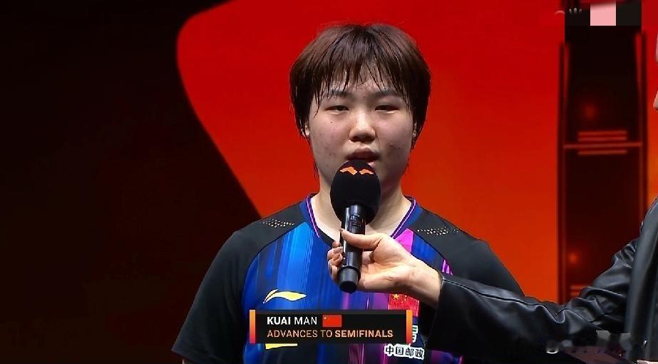 蒯曼4-2战胜大藤沙月晋级四强!赛后采访蒯曼却这样说,太谦虚了! 记者:恭喜蒯