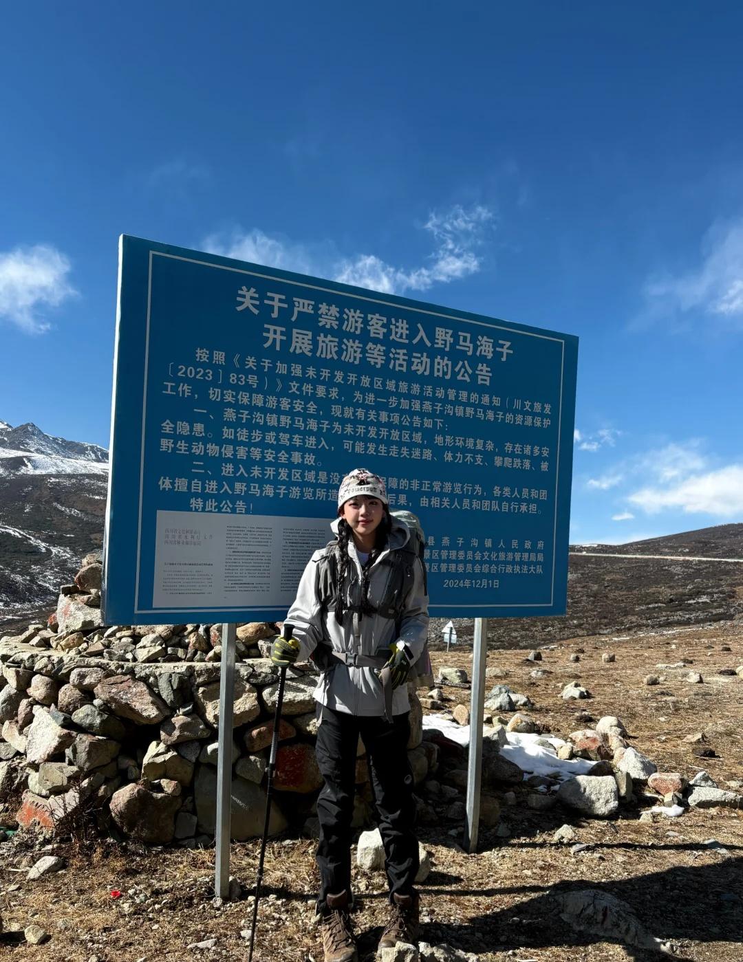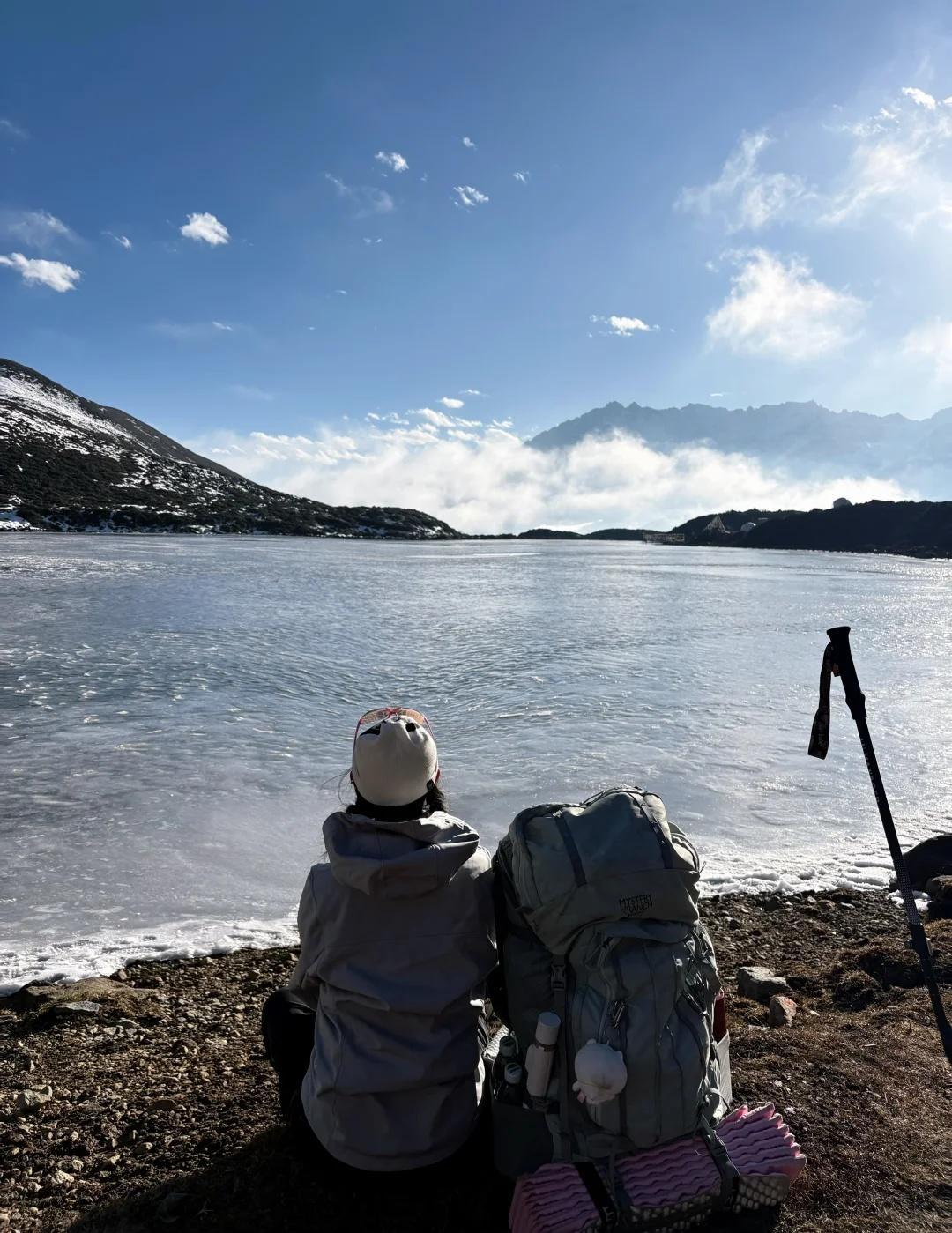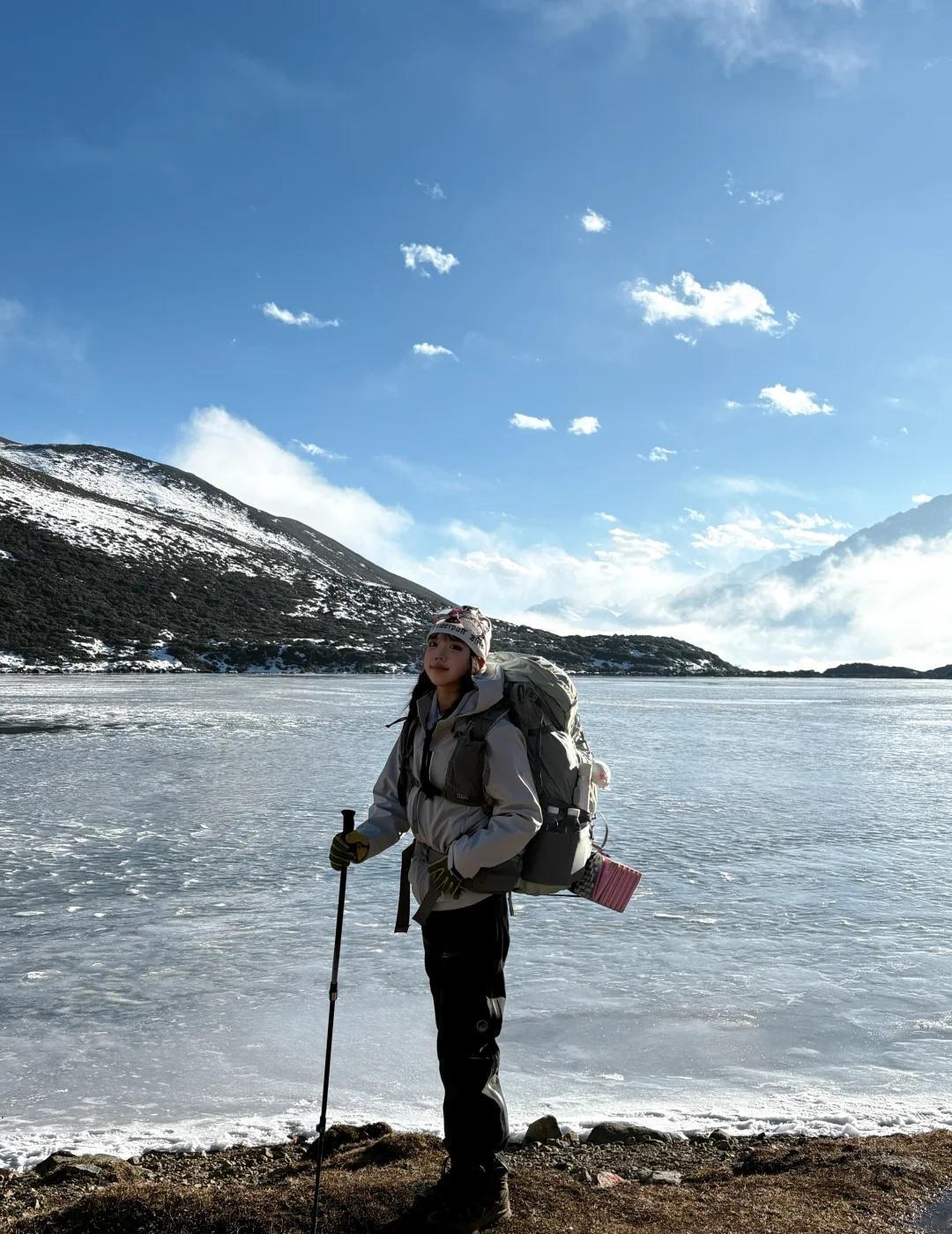 野马海子重装露营攻略 十二月的野马海子已经结冰啦,这次去重装太好玩了owo,傍晚海子和天空中镶嵌着雪山和晚霞,真的美晕了,重装的美好之处就在于这样的时刻只有露营才能享受到😺 🏔️野马海子位于康定市,离市区只有1h左右,算是接近性很好的简单路线啦,而且无需门票,以下带来这次的攻略: Day1: 因为是重装露营,所以不用太早出发,睡了个懒觉12.30从康定出发。 🚗自驾导航【雪门坎】 到了以后可以看到路边有一个禁止进入野马海子的牌子,这个牌子旁边可以停车,登山口就在这里马路的另一侧。 🧗🏻♀️全程5km,爬升200m左右 野马海子海拔4100m左右,重装一路拍照也只用了不到2h就到海子边了,时间非常宽裕。 ⛺到了海子边就可以扎营了,自己扎营是30一顶帐篷,算是清洁费,可以把垃圾扔在村民放置的垃圾桶里,省了很多事。也可以住营地的球形帐,差不多50💰一晚。 Day2 ⏱️7.00左右起床可以看到日照金山,非常美。然后就可以拔营下撤了,下撤路线更是简单,1h左右就可以到达马路边停车的地方。这次行程就圆满结束啦。 ⚠️注意 1.冬天露营一定要提前看温度带温标够的睡袋,要不晚上就很痛苦了,我这次带的是z1000非常足够。 2.在海子的冰面上玩耍一定要谨慎,如果冰冻的不结实千万不要踩上去,落水了真的会非常危险。 3.高海拔徒步千万要注意保暖,随时注意自己的身体情况,如果有强烈的高反症状或者身体严重不适一定要及时下撤。 4.虽然是简单路线也要提前下好轨迹,防止迷路! 👓:速浪 👔:黑冰软壳 👖:捕风硬壳 🥾:萨洛蒙4D 🎒:神秘农场bridger 徒步丈量世界 登山 户外徒步 野马海子 冬季徒步路线 向雪山走去 重装徒步 徒步露营