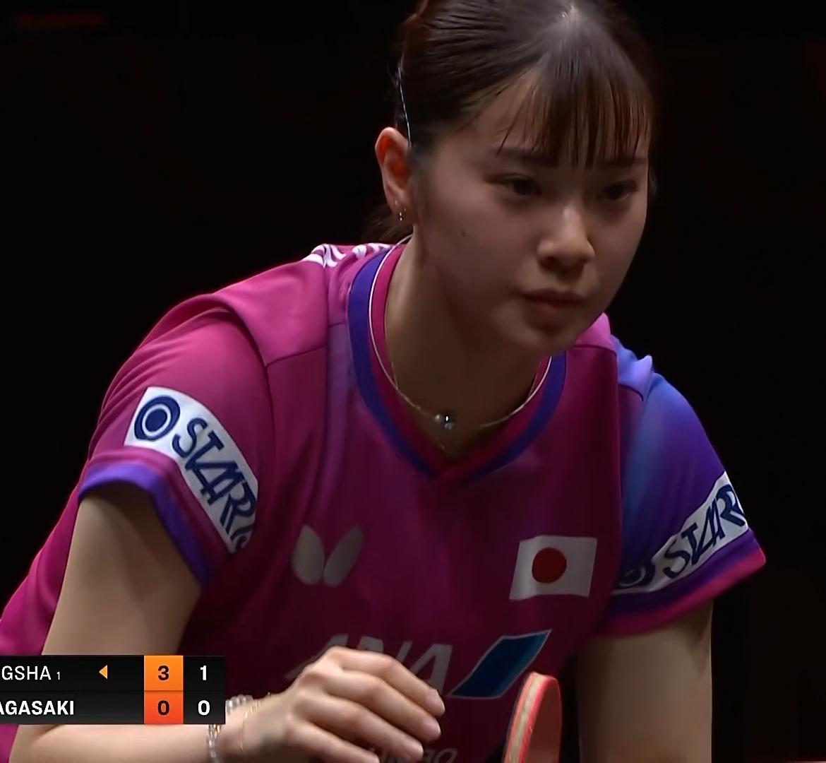孙颖莎4-0长崎美柚 乒乓球总决赛,孙颖莎横扫对手抢到最后一个四强席位。 莎莎首局艰难获胜,后面越打越轻松,第三局打得长崎美柚直跺脚。 第四局更是一边倒,恭喜孙颖莎打进半决赛。 比分:【12-10,11-6,11-6,11-1】 下一轮对阵: 孙颖莎VS蒯曼 陈熠VS王曼昱