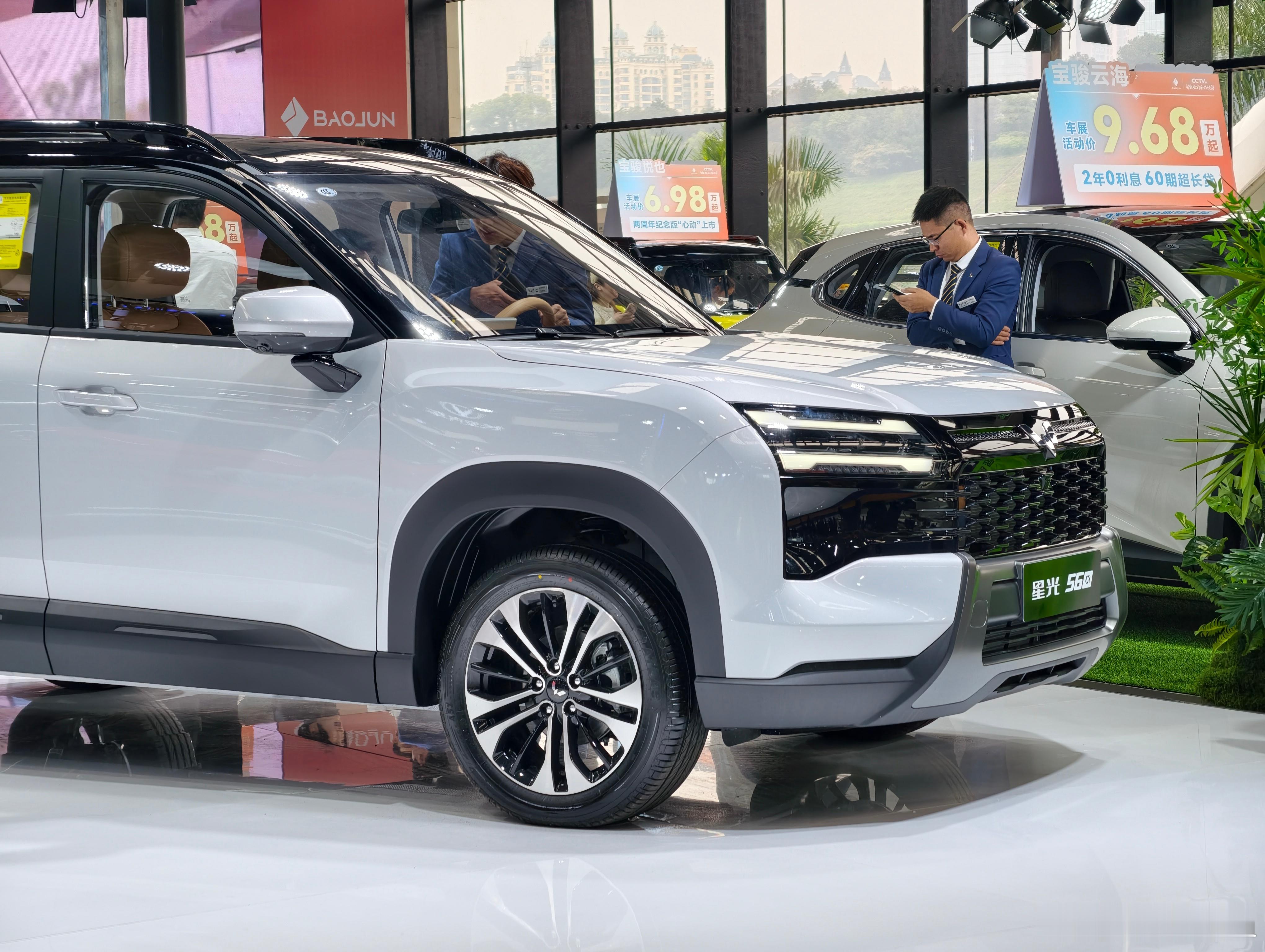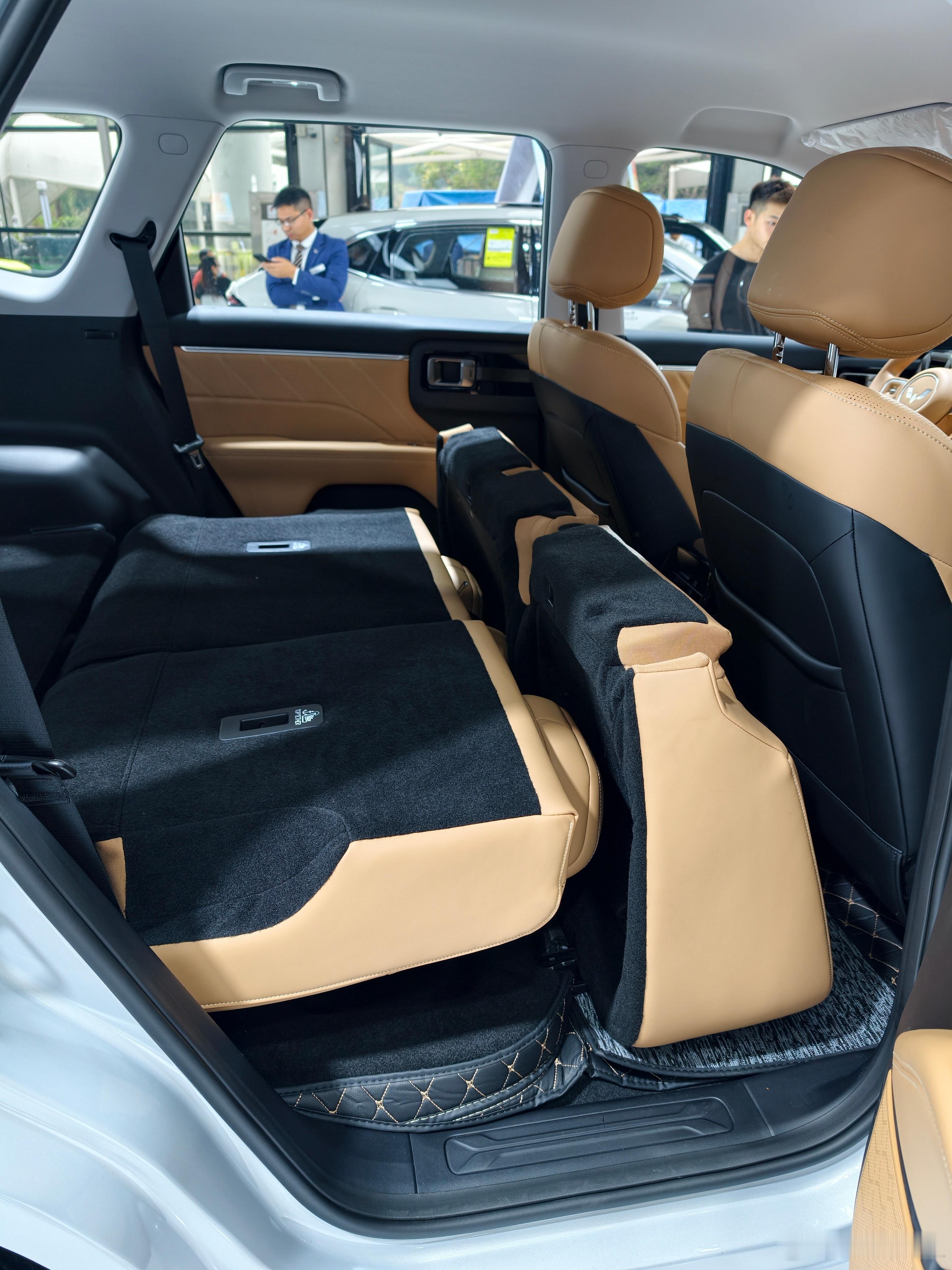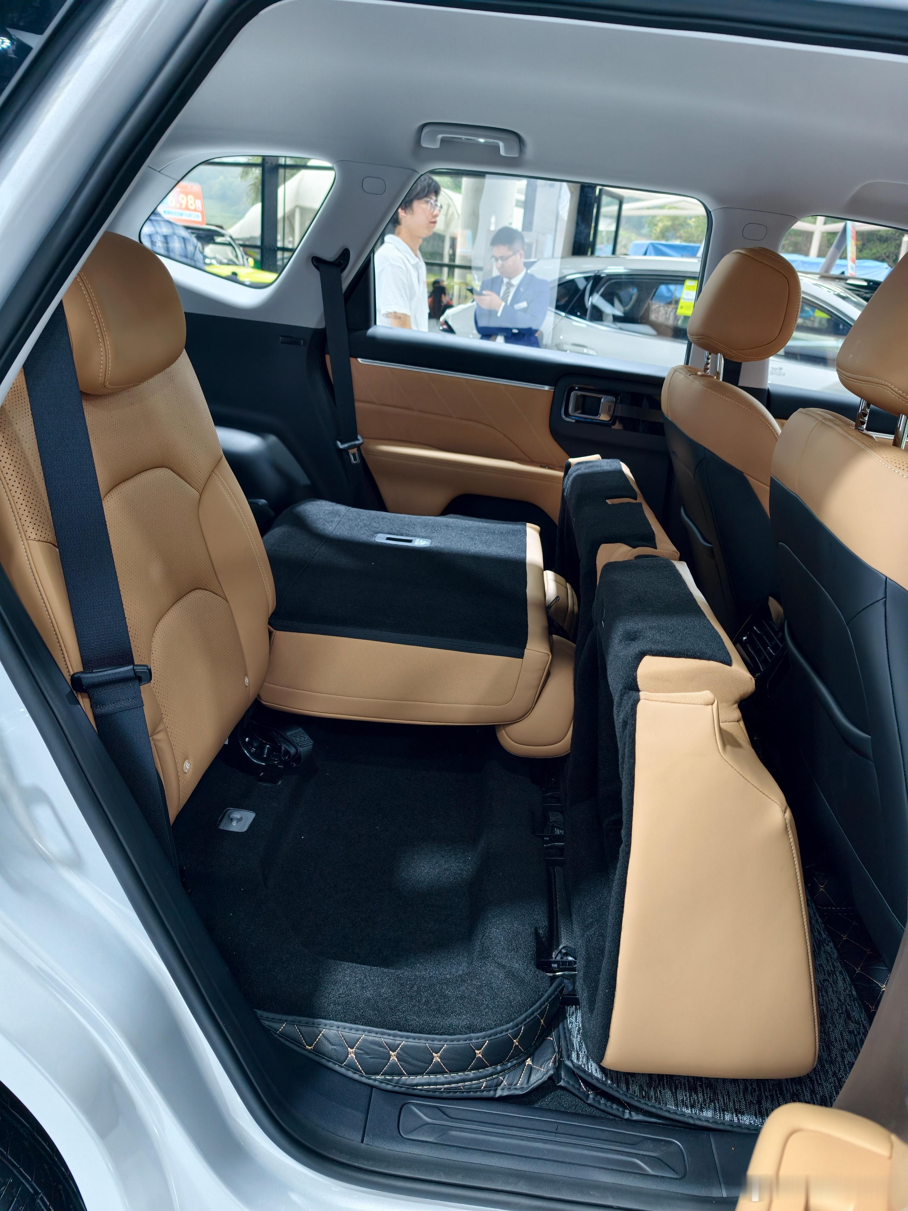 车展返图,五菱星光560几乎全颜色都在这了,我要买的话肯定是黑色,黑武士feel拉满这车有三个最大的惊喜,一个是造型,这个大家都说烂了,大家可以直接看图。第二个是内饰,座舱里无任何毛刺,拥有大面积软包,以及皮质包裹。我说句夸张点的,不是拉踩啊,这内饰的舒适度,触感,视觉效果比横置宝马还要好。我是真的不敢想象,五菱是怎么把这个内饰做到6万左右的?第三个,最大的惊喜是来自后排折叠方式。我人都看愣了。他们可以糊弄事的啊,为什么直接把魔术座椅的构造搬到这个SUV上?他们明明可以糊弄了事的呀!!后排放不平是没人指摘的,这车全系不到10w块,五菱银标你不至于。我倒是能看明白为什么要上魔术座椅,因为星光560是主打硬派风格的,离地间隙比较高,后备箱平面也比较高。如果强行做后排座椅放倒,后排乘客坐起来就不舒服,大腿会有明显悬空。抬高座椅,头部空间就没那么多了,也没有纯平空间。这两者各自做点取舍,我是能理解的。但你说上个魔术座椅做个完美的解决方案,你完美是完美了,但这下我看不懂了。你星光560全系没一个超过10万的,你上这玩意?我看不懂,但我大受震撼。大v聊车