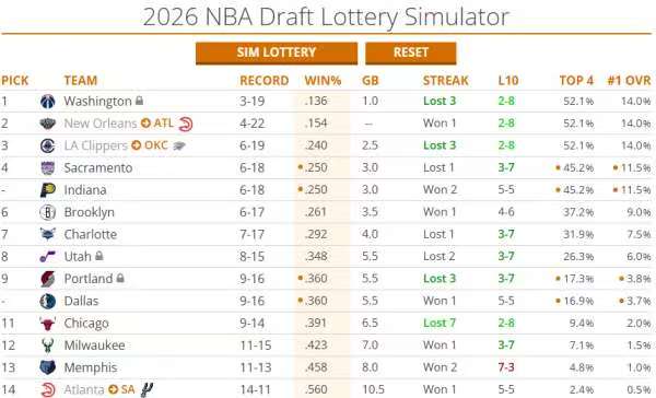雷霆队现在有多强,相信24胜1负的战绩已经说明了一切,最近有媒体用某系统推算雷霆本赛季的战绩,最终得到的胜场数为72.5胜。 而一路高歌争夺总冠军的雷霆,并不妨碍他们明年拿到高顺位选秀权。在今天快船队输给火箭队之后,球队战绩正式来到联盟倒数第三。 这就意味着他们在明年拥有14%的概率抽到状元签,而抽到前四签位的概率则达到52.1%,而在此前保罗-乔治的交易中,他们将这个首轮已经送给了雷霆。 如果雷霆能得到前三顺位签,签下AJ迪班萨或者布泽尔,亦或是威尔逊其中的一位,都可能使得阵容中拥有4位年轻的全明星球员!