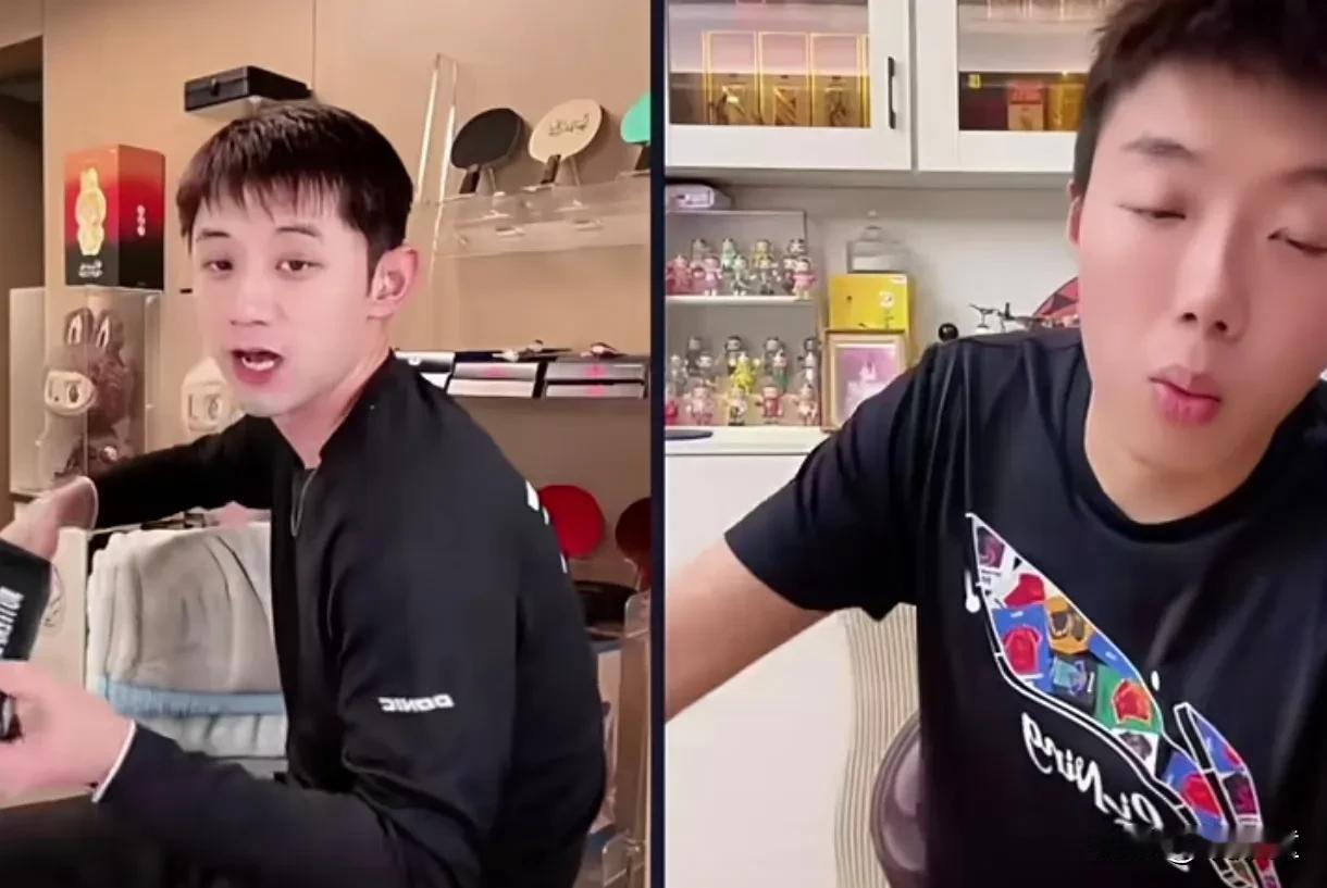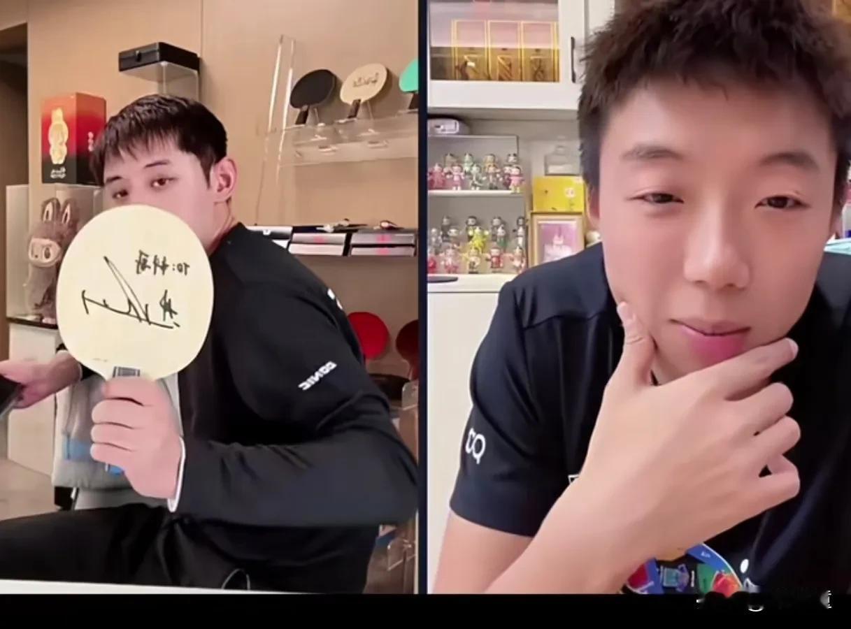 张继科的不经意,让尹航羡慕的眼神都飘到屏幕外了! 张继科与尹航连线直播,谈到樊振东的球拍,根本买不到! 张继科不经意的拿出了樊振东的签名球拍,并说到,樊振东的球拍要回收的,我这里有一款,签名版本! 张继科看似不景气的拿出来,让尹航羡慕坏了,估计后悔当初在八一队的时候,没让樊振东多签名几块! 不过,以尹航与樊振东目前的关系,他张口,樊振东肯定会给,估计不好意思开口罢了!