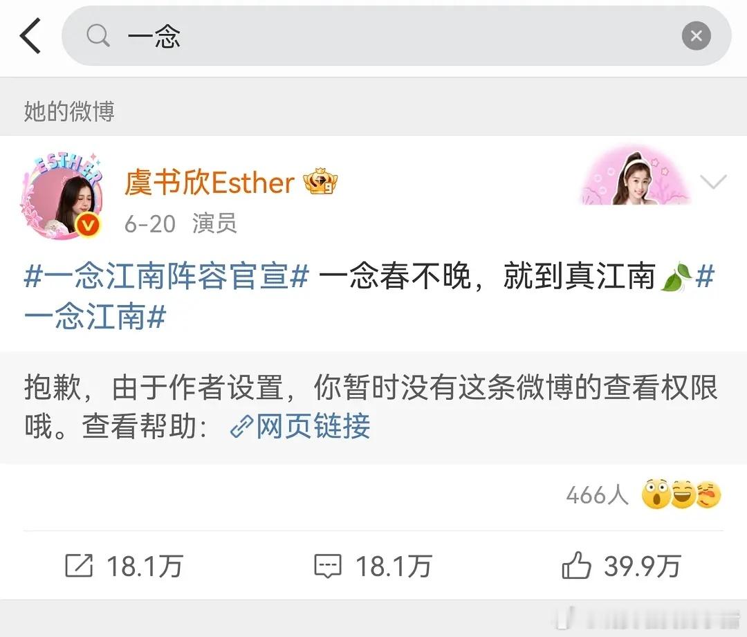 一念江南已删除虞书欣官宣微博,还把她取关了