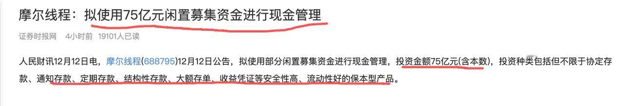 这个事情有点像开玩笑!开始看到这个消息的时候,以为是抹黑,没想到是真实的,一个3年来都亏损的企业,一旦上市了,开始有富余的资金进行理财管理,这样的情况是好事还是坏事? 企业上市募集的资金应该大部分用于研发生产吧?作为一个上市公司,募集的资金拿来做现金管理,估计华为都想笑了,在我国正在进行ai硬件进行攻坚的时期,我们的GPU跟美国差距这么大,上市募集的资金应该用在刀刃上呀,加大研发力度,吸引更多人才参与研发,拿来做现金管理,难以让人理解!