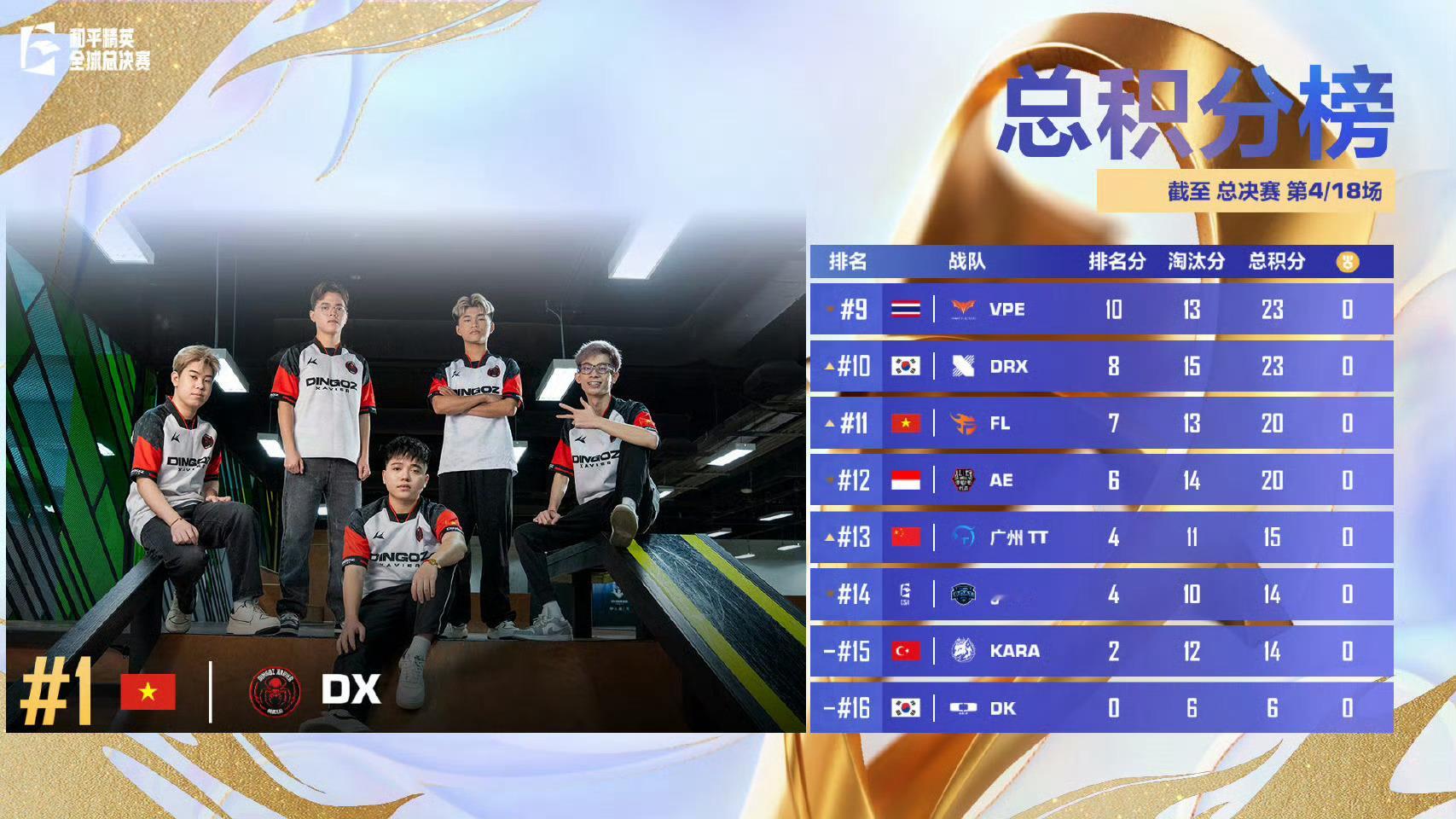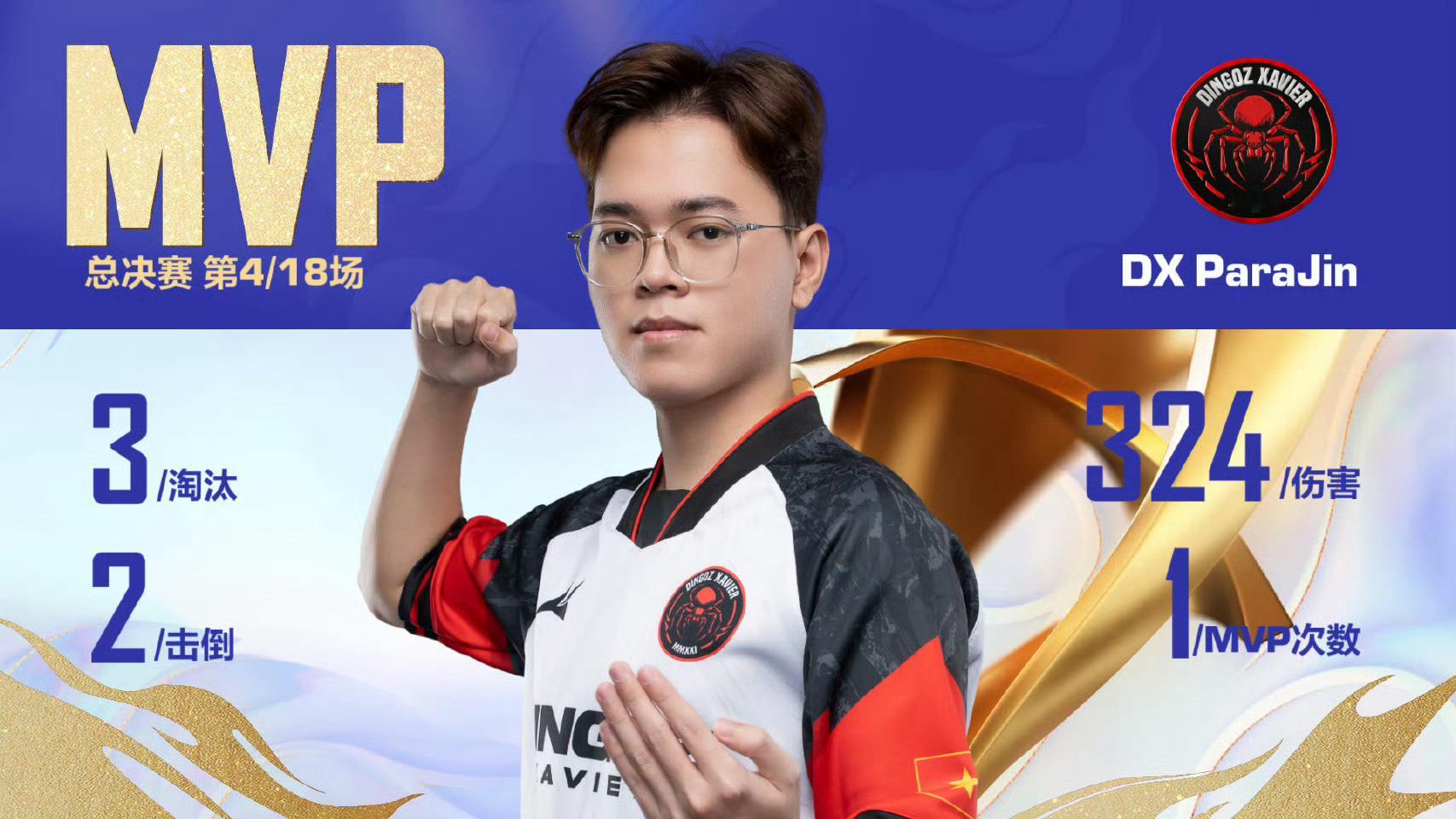 和平精英世界赛决赛揭幕战TT登场全球总决赛 【2025和平精英全球总决赛】决赛 Day1 第四场获胜队伍:DX战队MVP:DX·ParaJin截至本场总积分榜第—名:DX战队第二名: