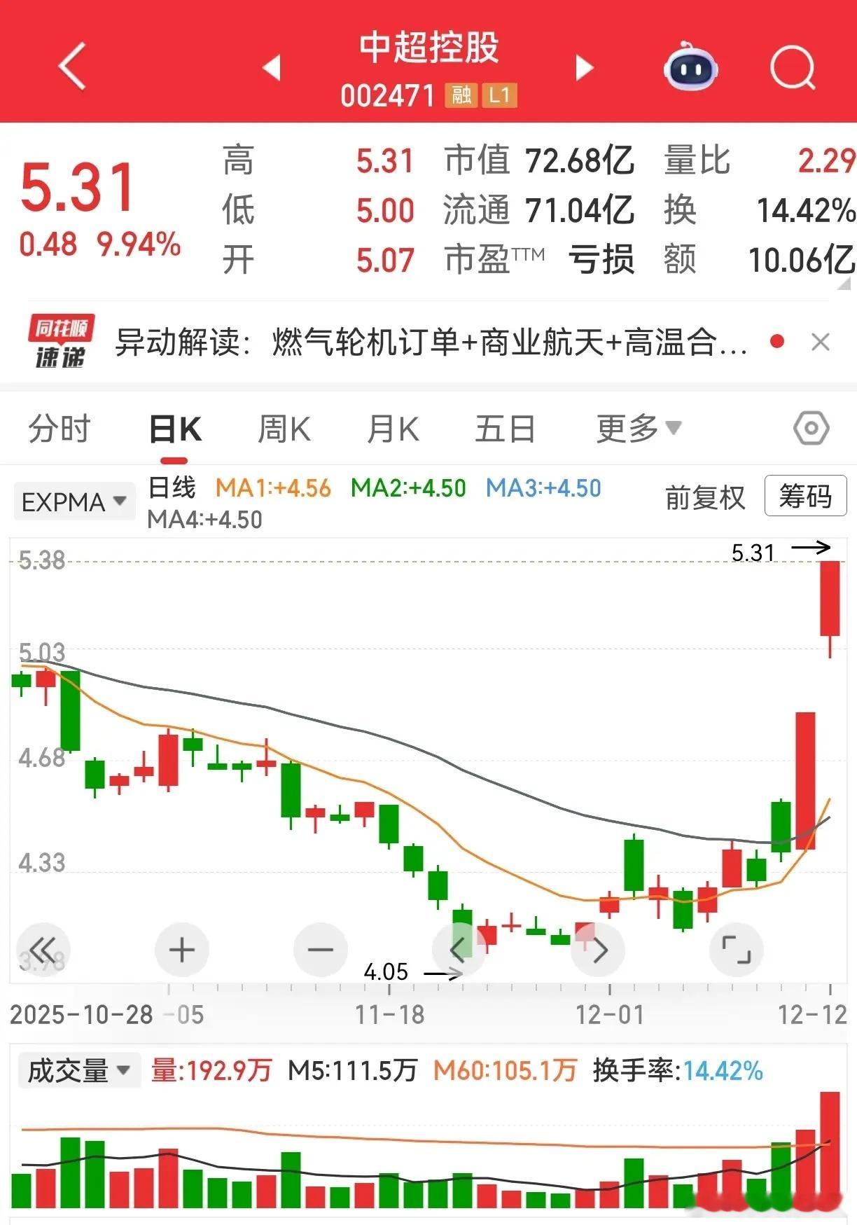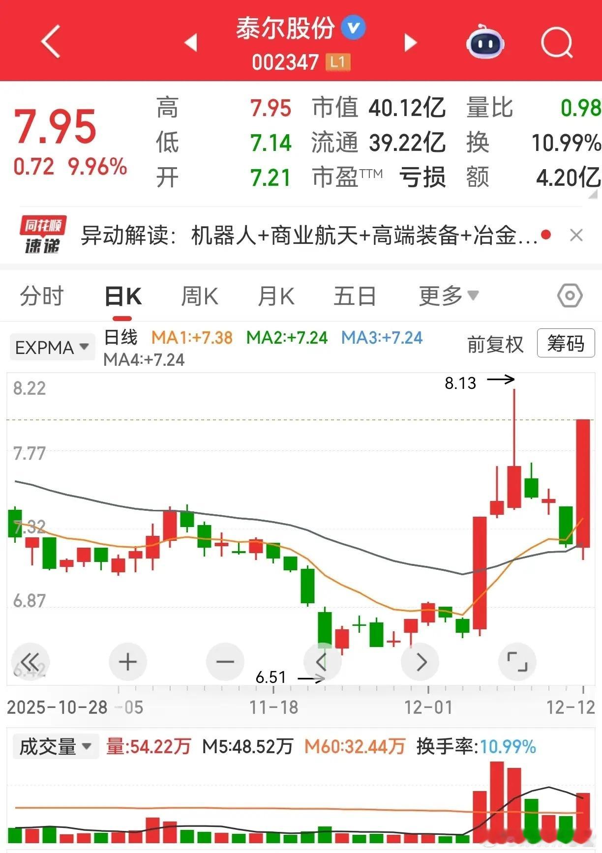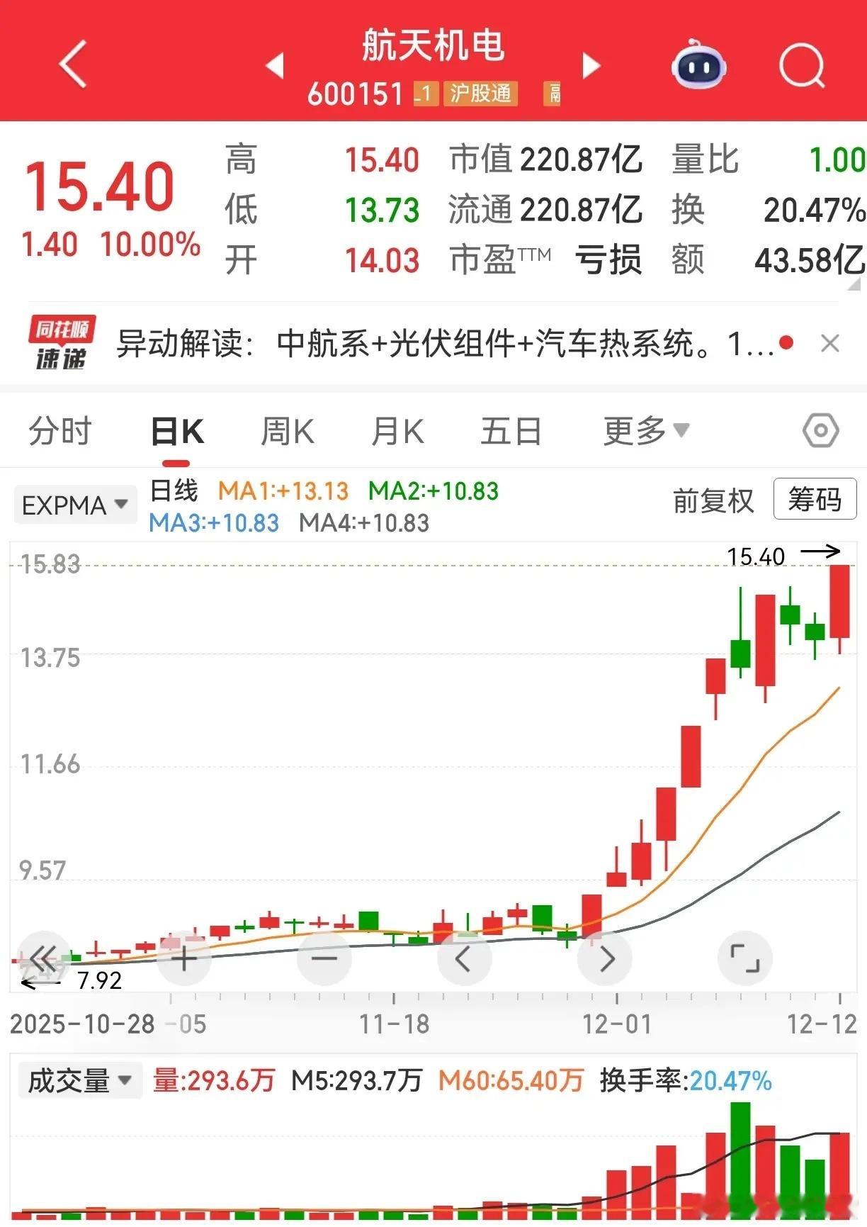 14股涨停!航天主线燃爆市场今日盘面14枚涨停炸场,航天方向成绝对引擎!顺灏股份率先封板打响头炮,再升科技五连板气势如虹,龙洲股份人气爆棚,西部材料叠加属性强势跟涨,中超控股、航天长峰、泰尔股份、航天机电纷纷掀涨停潮。中源家居新高不断,中国高科趋势涨停,梅雁吉祥震荡上行,常宝股份、凤竹纺织、西陇科学更是上演反包好戏。当下行情,与其追高热点博弈,不如布局低位防守板更稳妥——虽可能节奏稍缓,但安全性拉满,完美避开高位票连板后跳水的风险!