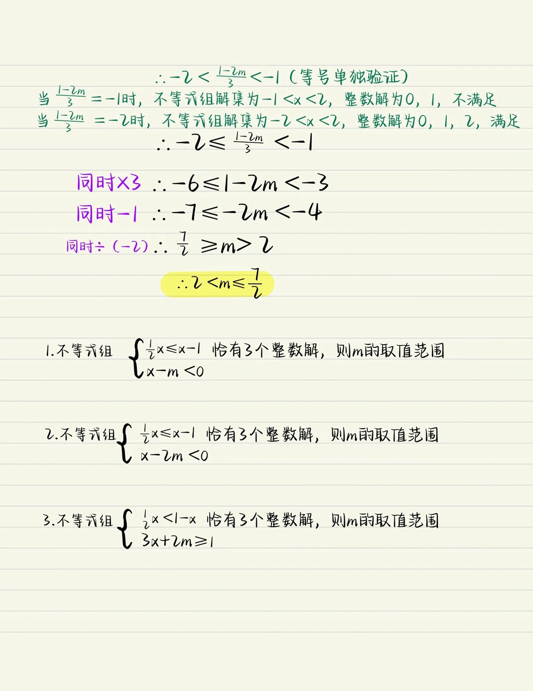 初中数学 不等式组整数解个数 不等式组解不等式组 不等式
