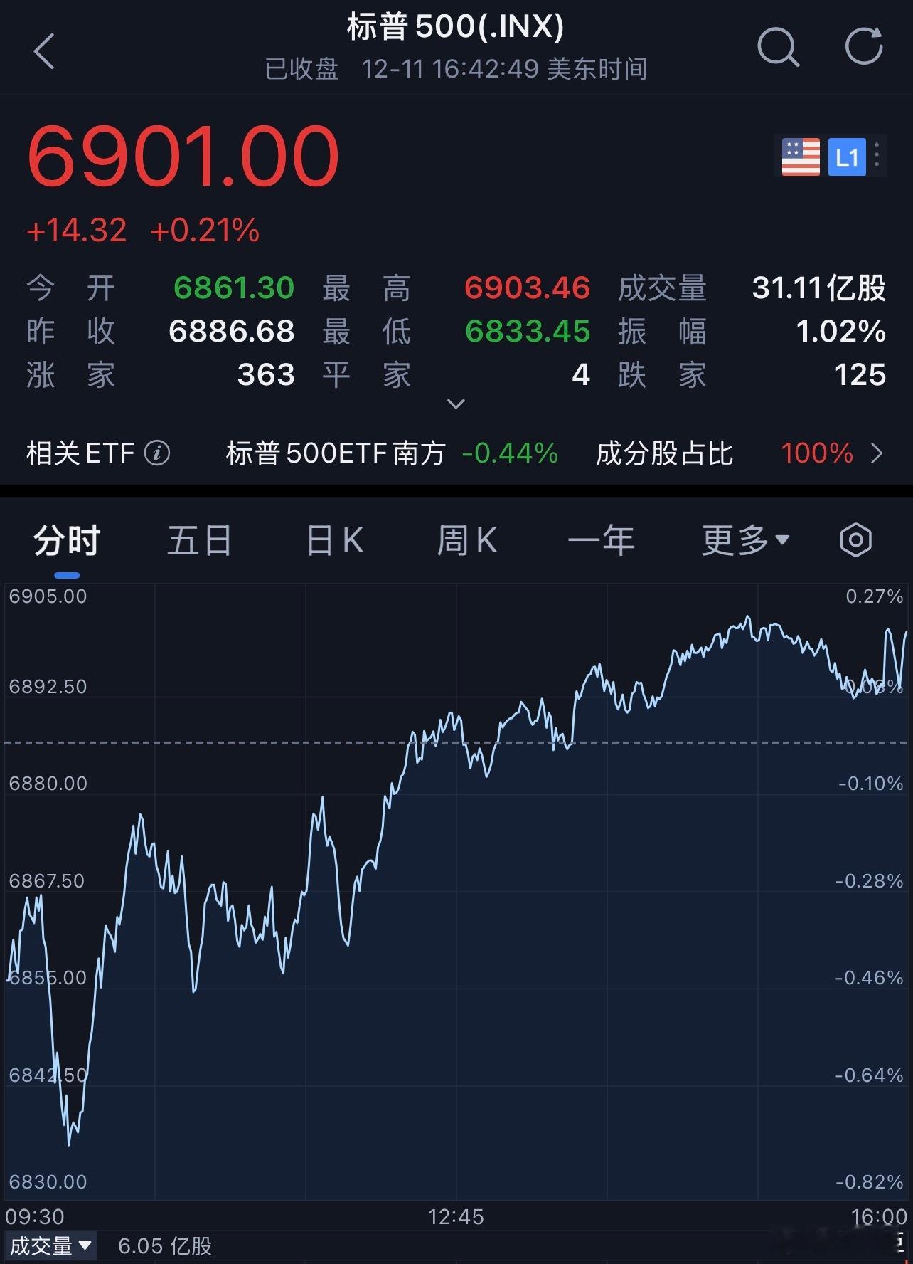 每天早起打卡老板们早安,打卡养铁咯美东时间周四,美股三大指数收盘涨跌不一,❗️标普500指数与道指创下收盘历史新高(不是盘中指数新高,是收盘指数新高)。截至收盘,道指涨646.26点,涨幅为1.34%,报48704.01点;纳指跌60.30点,跌幅为0.25%,报23593.86点;标普500指数涨14.31点,涨幅为0.21%,报6900.99点。纳斯达克中国金龙指数收跌0.09%,❗️蔚来涨近2%。国际金价、银价出现小幅回落。 甲骨文跌超14%2025最后20天 金银比跌破70