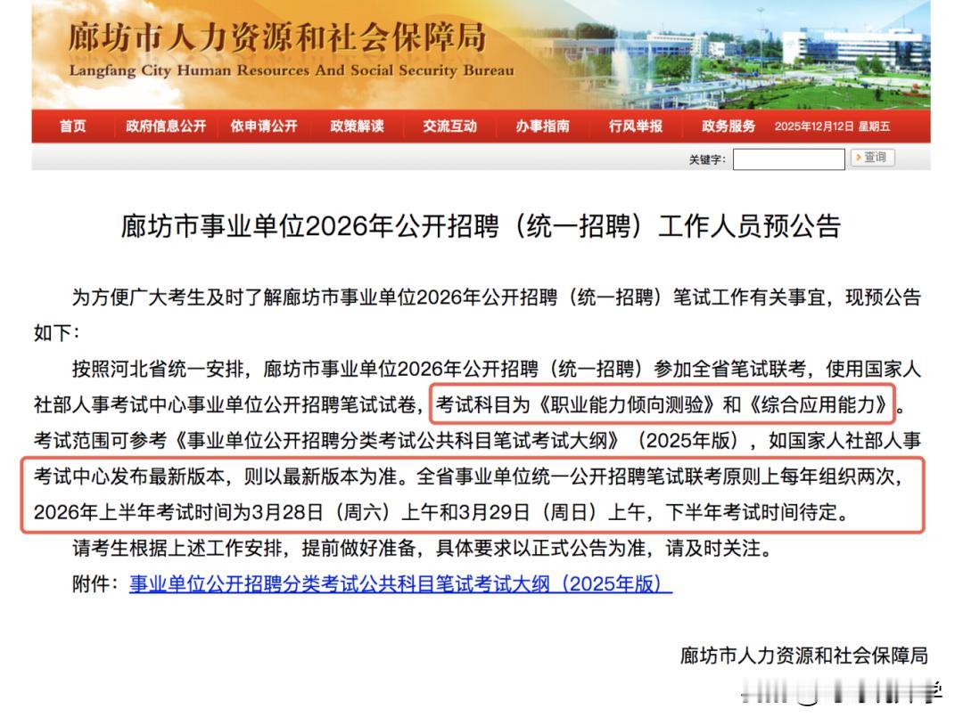 🔥 收藏!26 上半年事业编联考:笔试 3.29,岗位 14W+,38 岁也能考! 家人们!26 上半年事业单位联考关键信息新鲜出炉,想进编的速看👇 🌟 核心时间节点 ▪️ 笔试时间:2026 年 3 月 29 日(固定!) ▪️ 公告发布:2026 年 1-2 月(多省陆续发布) 💥 岗位规模 & 地区 ▪️ 岗位量:去年放出 14W + 事业编岗位(今年预计持平或增加) ▪️ 参加地区:20 + 省份(如海南 / 云南 / 湖北 / 广西 / 重庆 / 陕西等) ✅ 报考福利 ▪️ 年龄放宽:大概率放宽到 38 周岁(比往年多 3 年机会!) ▪️ 笔试科目:固定职测 + 综应(按联考大纲复习就行) 📌 备考小贴士 提前复习职测(言语 / 判断 / 数量 / 资料)+ 综应(应用文写作 / 案例分析) 1 月起关注所在省份人社厅官网 / 公众号,及时获取公告 年龄达标的别错过!38 岁是最后一波机会 ❓ 互动提问 你所在的地区参加联考吗?今年打算冲事业编吗?评论区聊聊你的备考计划👇 事业单位联考 26 事业编 编制机会 事业编考试 职测综应 备考指南 38 岁可报 上半年联考,@冯哥说升学专注江苏升学全赛道!中考 / 高考 / 考证 / 单招 / 职教高考,一站式信息传递 + 专业指导✨ 江苏志愿填报避坑、专业综评拆解、升学规划定制,从选校到录取全程护航! 更多升学干货、政策解读、报考技巧,欢迎留言交流,帮你少走弯路,精准上岸~