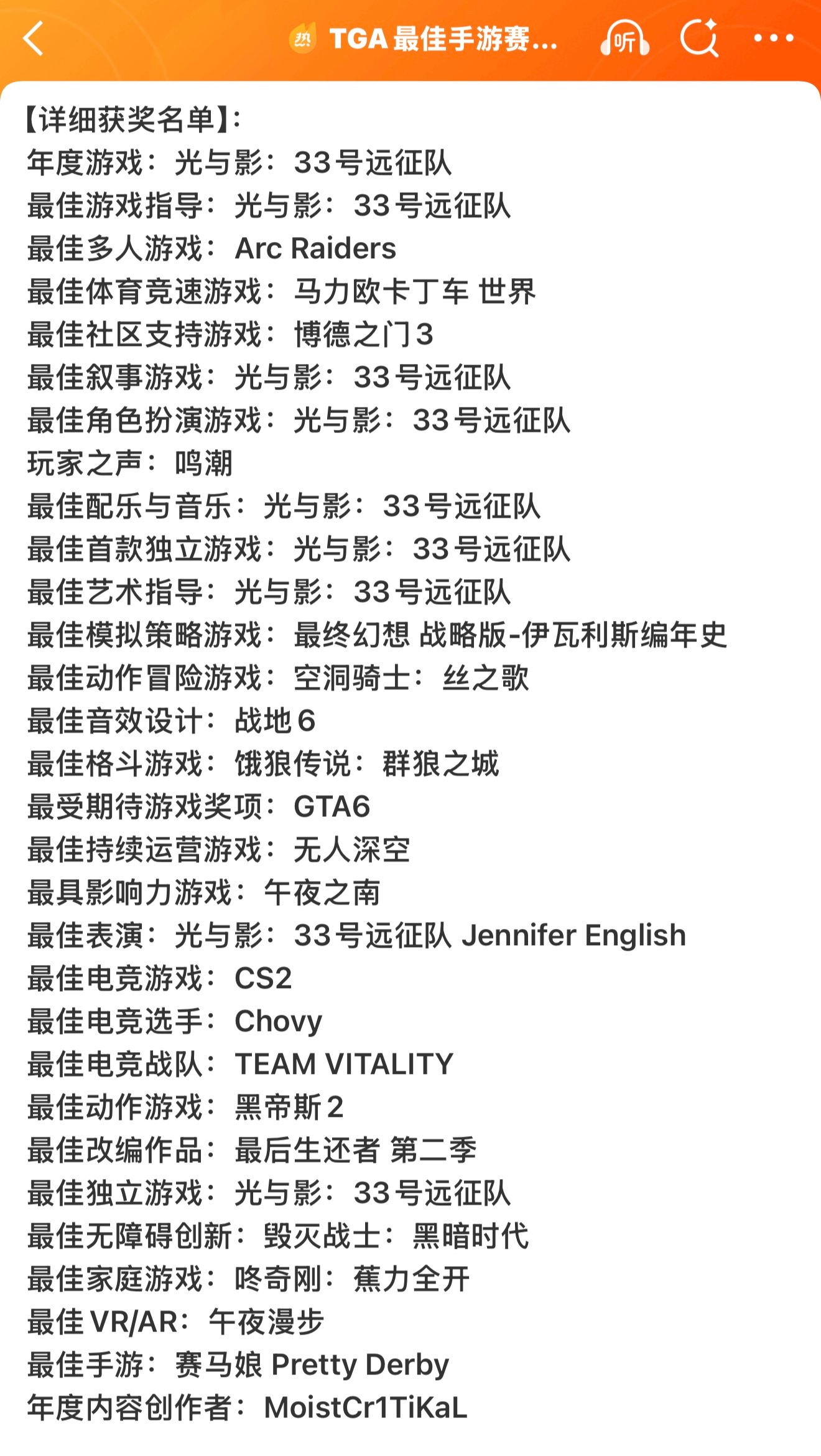 TGA2025天国拯救2一个奖都没有。太扯淡了吧?这种榜单不过就是资本想捧谁就捧谁,谁充值多就给谁。 和英国QS又有什么区别呢