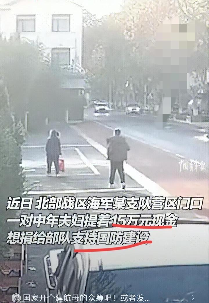 格局太大了!山东威海,夫妻俩拿着个手提袋送到了北部战区海军支队营区门口,士兵还以为他俩要寻求帮助呢,万万没想竟然是捐给部队15万元现金用于支持国防建设! 营区门口手提袋一放,转身就走,15万现金藏着最朴素的爱国心。士兵以为是求助,没想到是给国防建设的“硬核支援”,夫妻俩大步离开时的笑容,比任何豪言壮语都有力量。 这哪是简单的捐款啊,分明是普通百姓对国家的底气托举。15万对国防是微光,可这份“国家有事我必上”的自觉,比千万巨款更珍贵。国防从不是军队的独角戏,而是每个普通人心里的“防护坝”,你添一块砖,我加一片瓦,才筑起了最牢的安全防线。 威海作为甲午战争纪念地,这份家国情怀更是刻在骨子里。现在总有人说爱国很宏大,可这对夫妻用行动证明,爱国就是实打实的牵挂与付出。 你被这对夫妻的赤诚打动了吗?如果是你,会用什么方式表达对家国的热爱?来评论区聊聊~