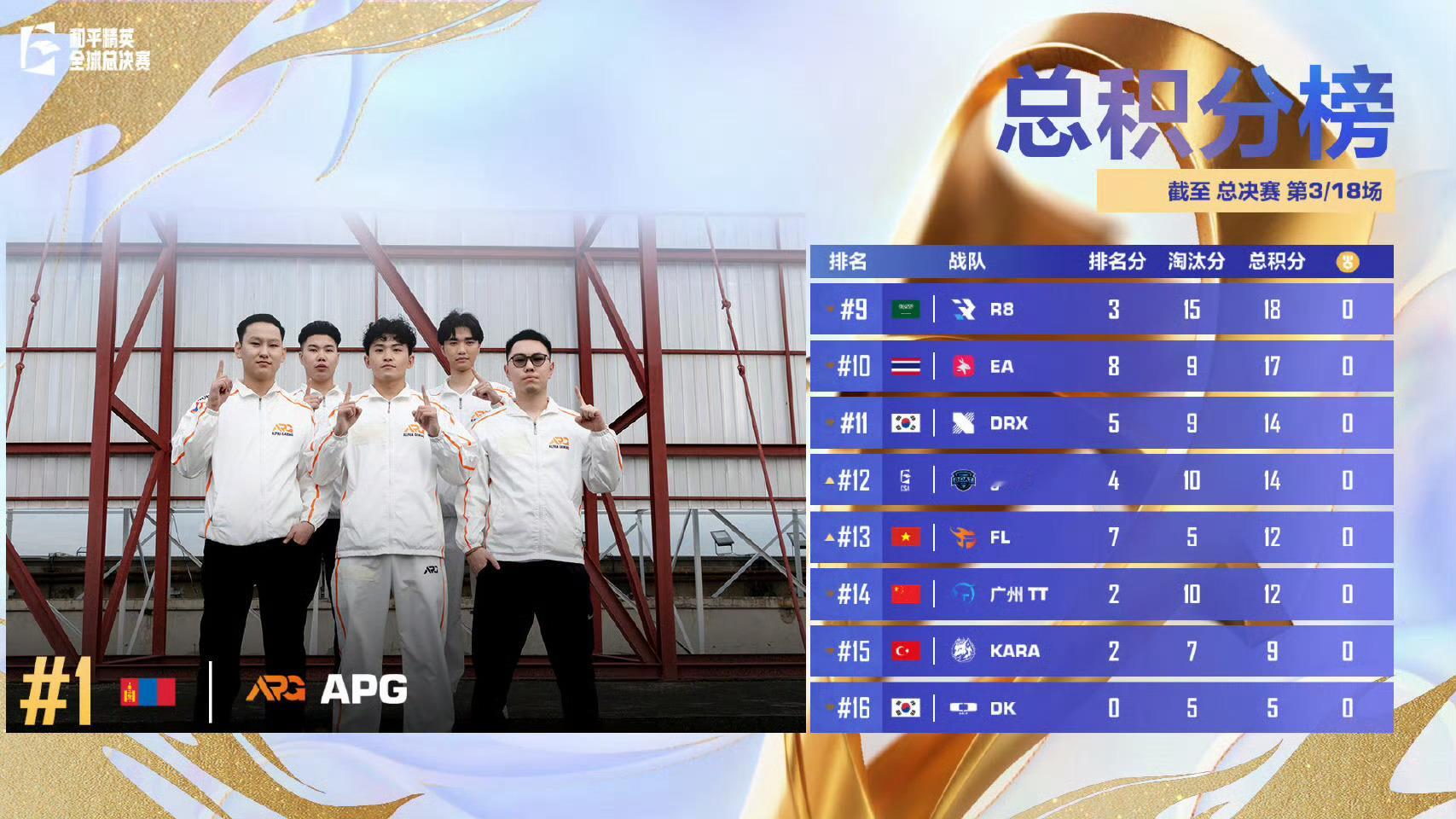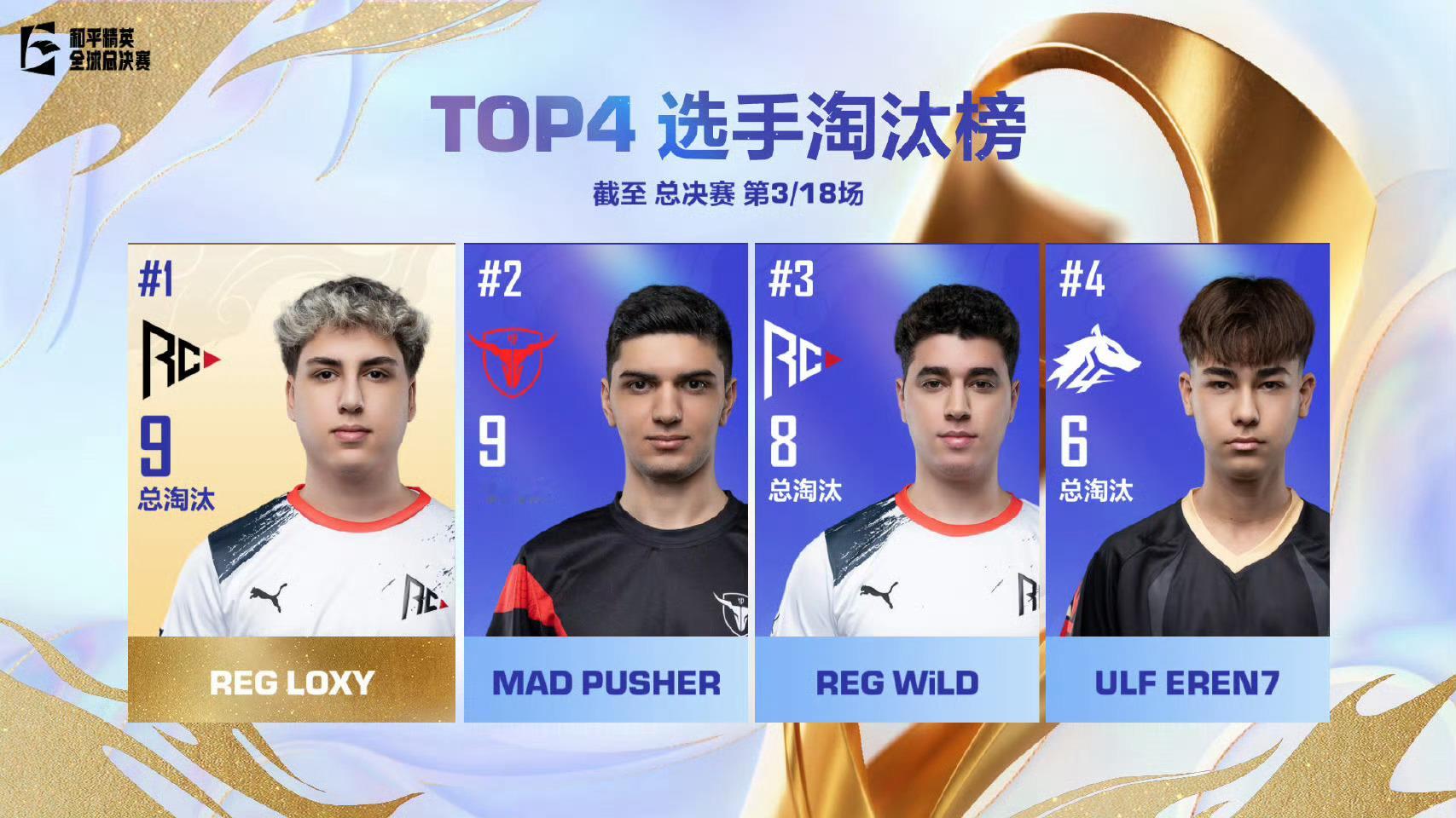 和平精英世界赛决赛揭幕战TT登场全球总决赛 【2025和平精英全球总决赛】决赛 Day1 第三场获胜队伍:MAD战队MVP:MAD·FLIP截至本场总积分榜第—名:截至本场淘汰榜第—名:REG·LOXY第二名:MAD·PUSHER第三名:REG·WiLD第四名:ULF·EREN7
