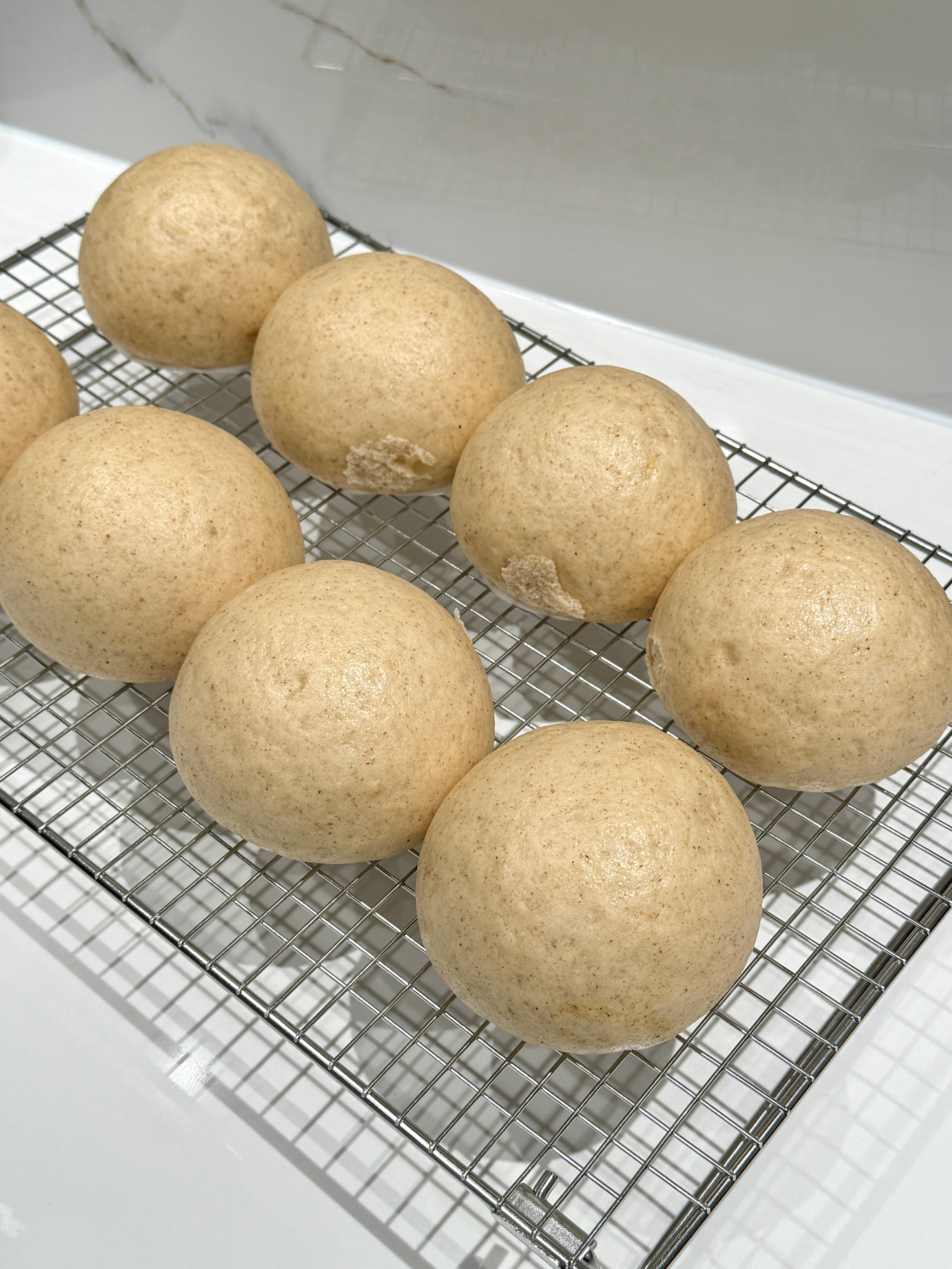 晚上准备开播,开播前还在蒸馒头的山东人我太爱玩面团了,贼解压,虽然没有水光肌,加了点全麦粉,是那种山东呛面馒头的口感,贼香