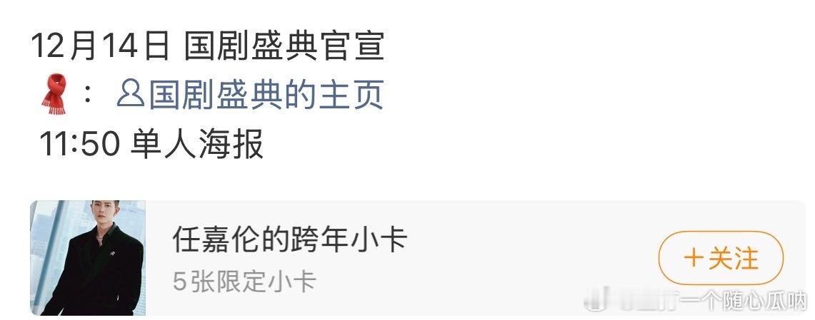 任嘉伦12月14日国剧盛典官宣