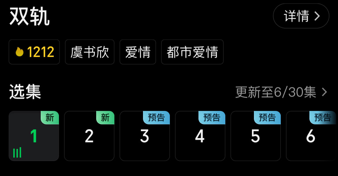 双轨空降了虞书欣何与新剧首播6集 12月12日,主演的电视剧《双轨》空降播出,首播六集。