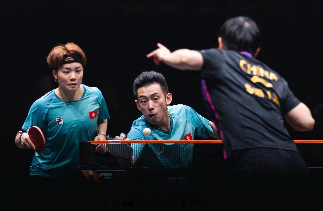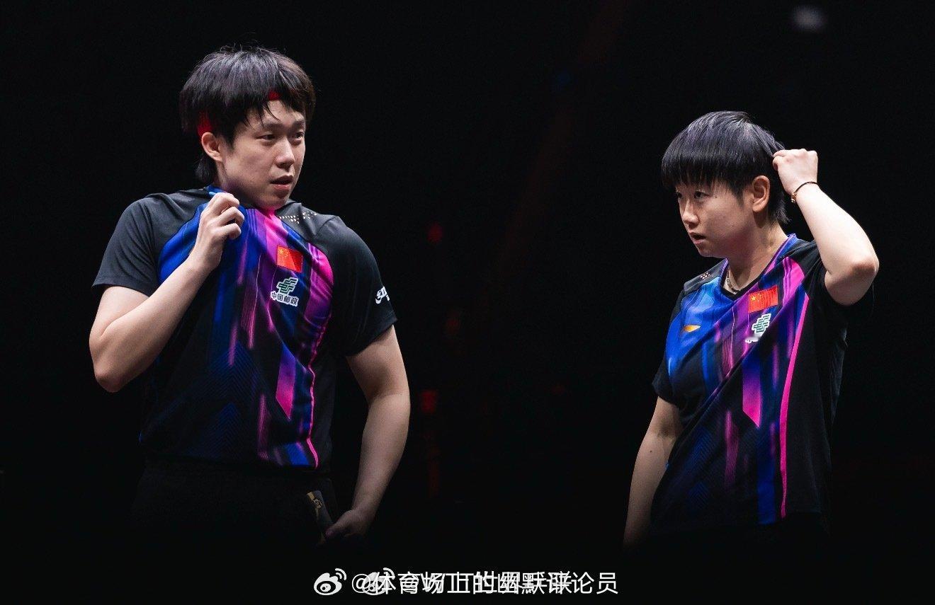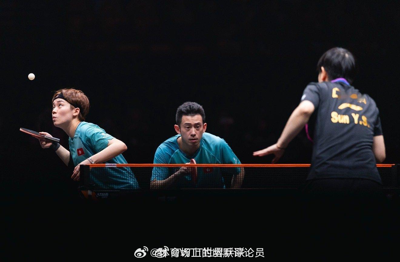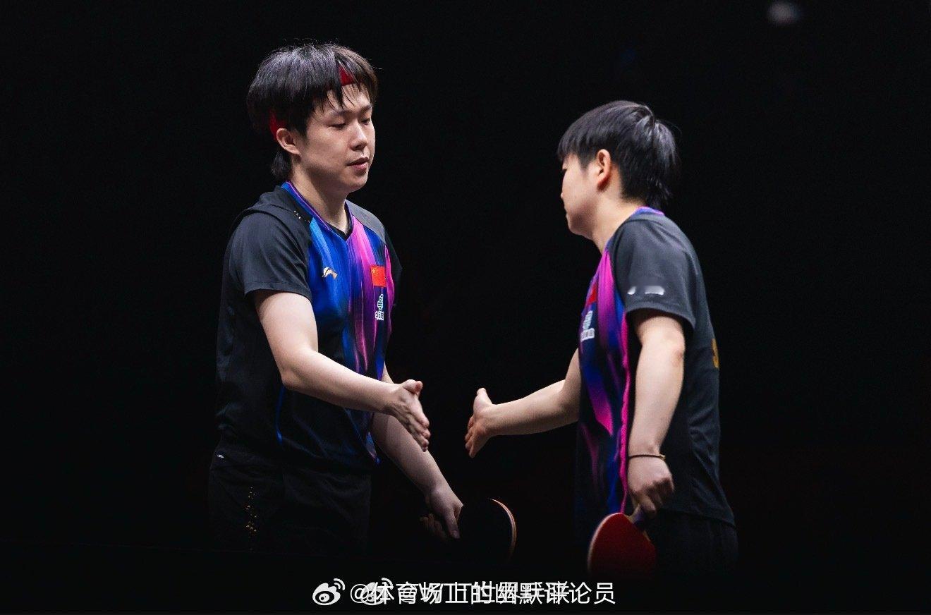 混双小组赛王楚钦/孙颖莎(CHN)3-2黄镇廷/杜凯琹(HKG)【9-11,11-5,11-4,1-11,12-10】 ()