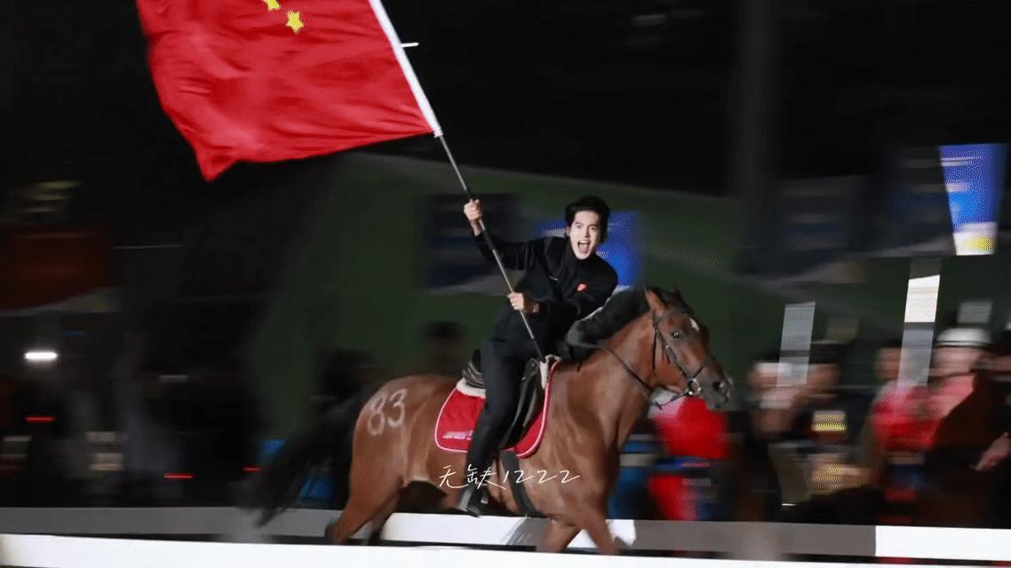 于适在全国骑射巡回总决赛开幕式作为中国队代表入场,那叫一个意气风发。马儿驰骋,双手脱缰,旗帜高高举起,笔直有力,完全是热血青年来着。看得人心沸腾啊! ()