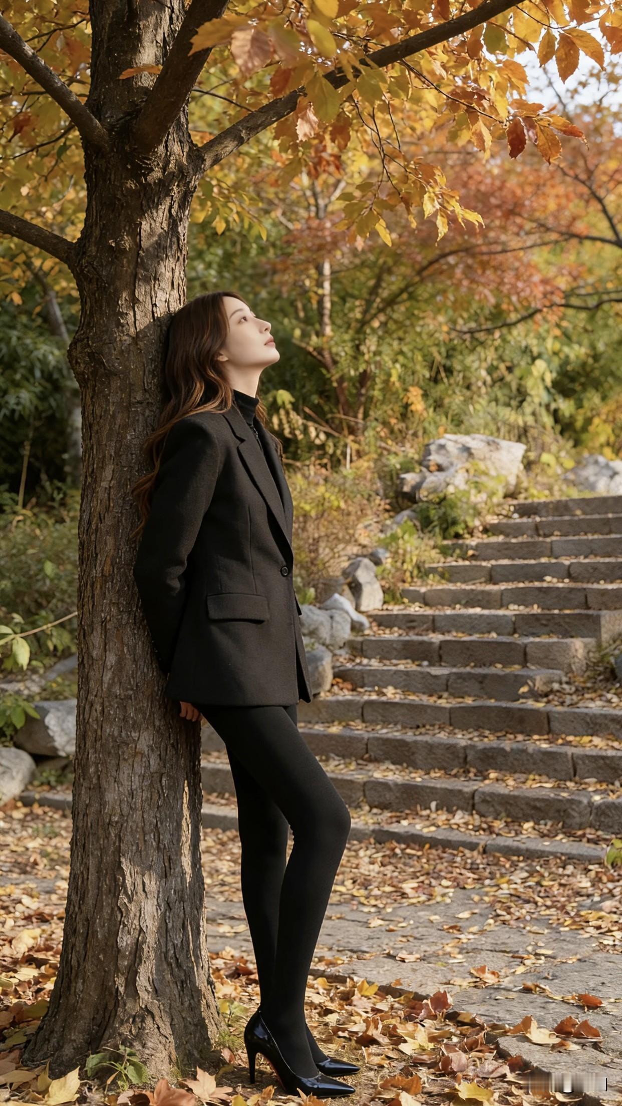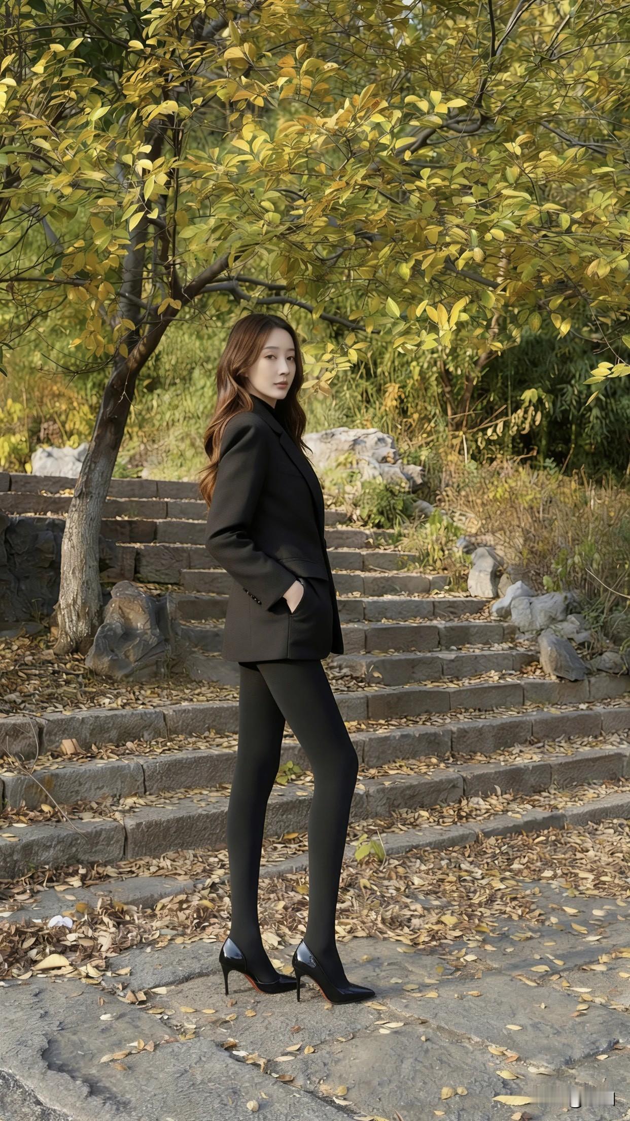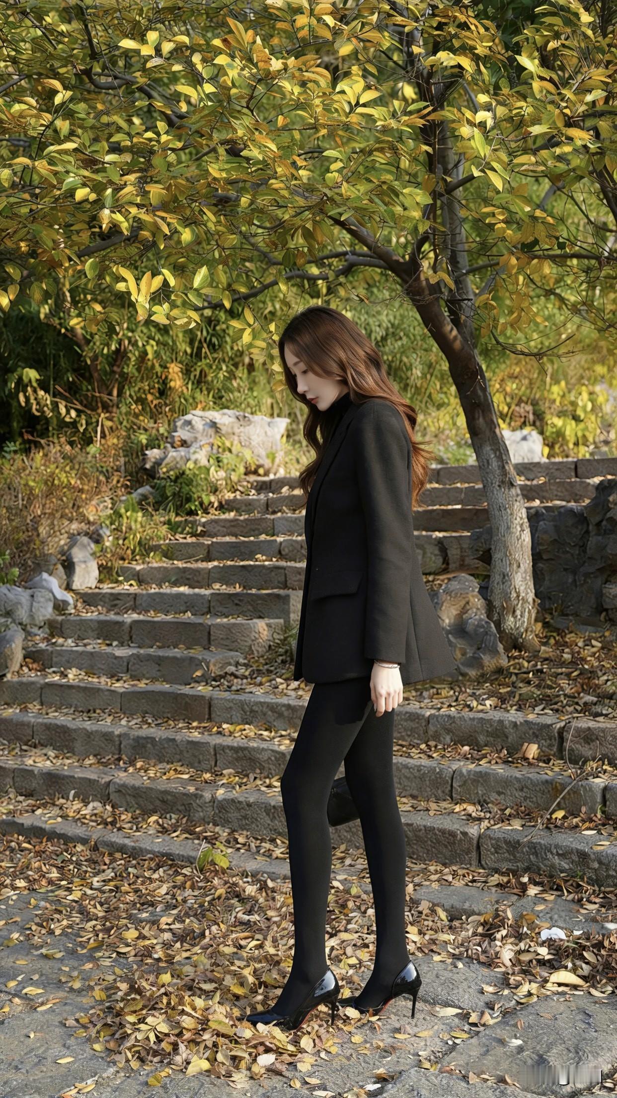 女人怎样穿搭,更显气质秋日穿搭指南:黑色西装外套+黑色丝袜+高跟鞋,优雅气质,尽显时尚!🍂👠