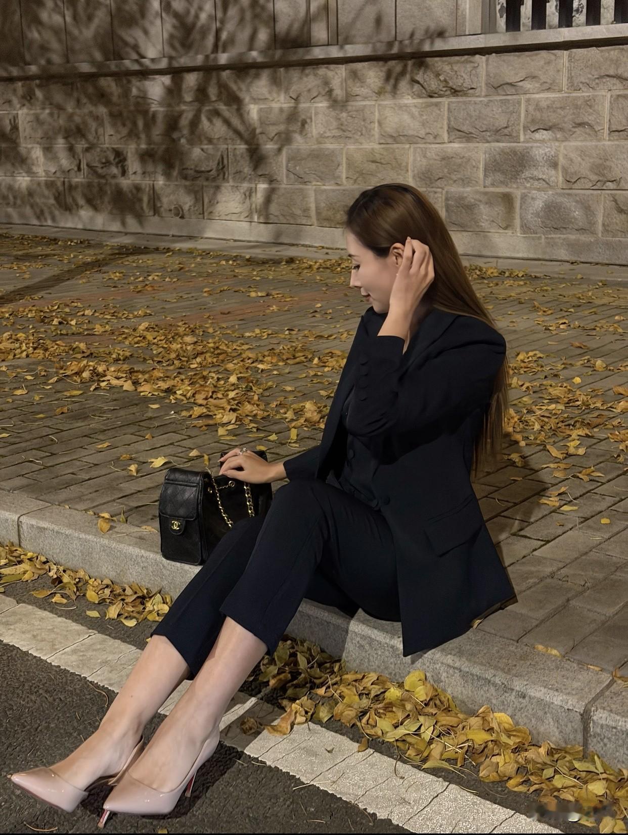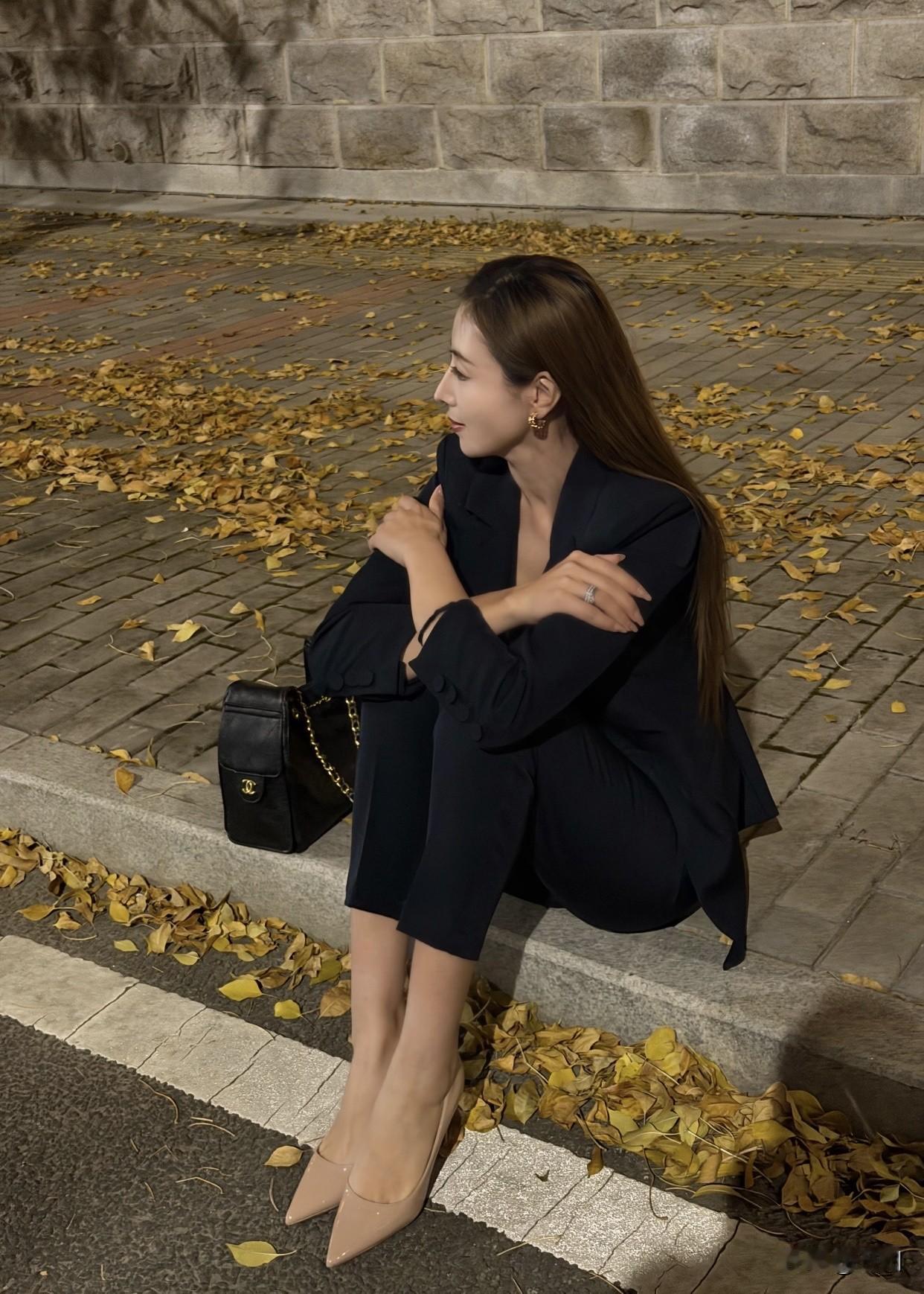 高跟鞋要怎么搭配才好看黑色通勤套装搭搭裸色高跟鞋的美女