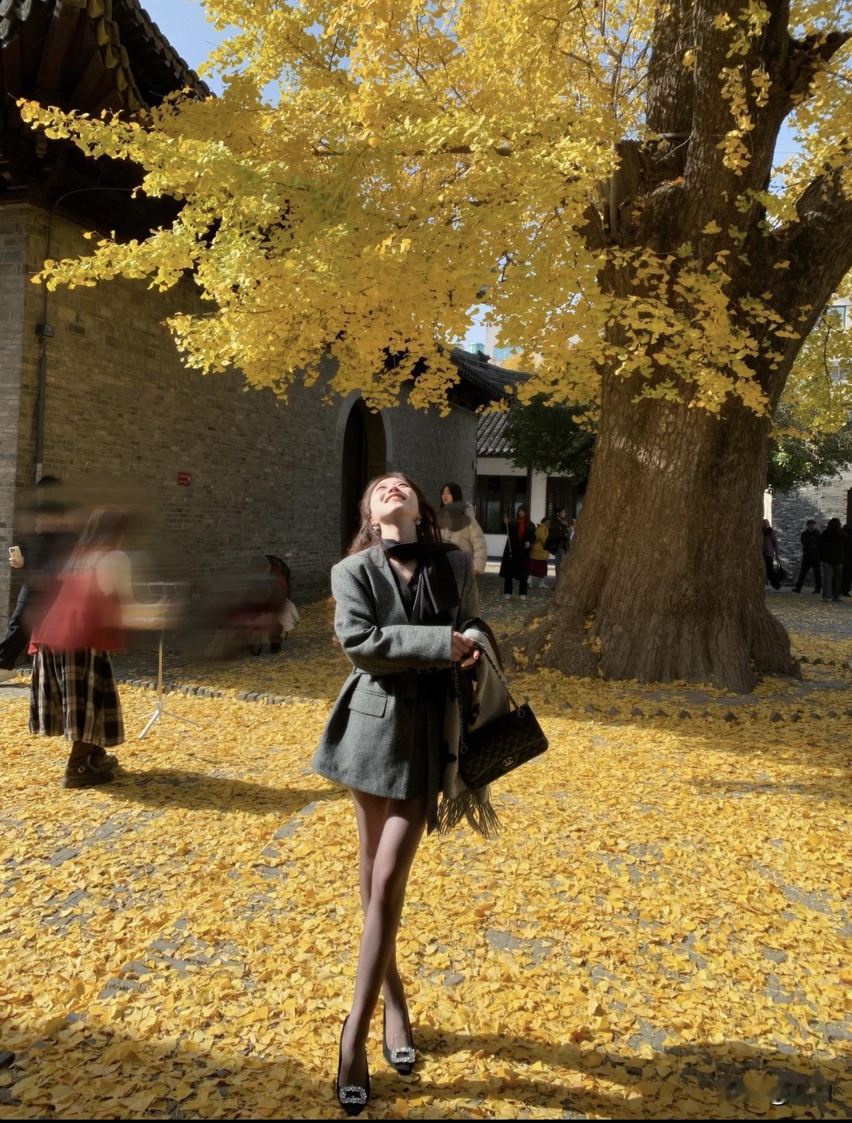 每天美丽照片分享秋叶落满地,美人倚树思。