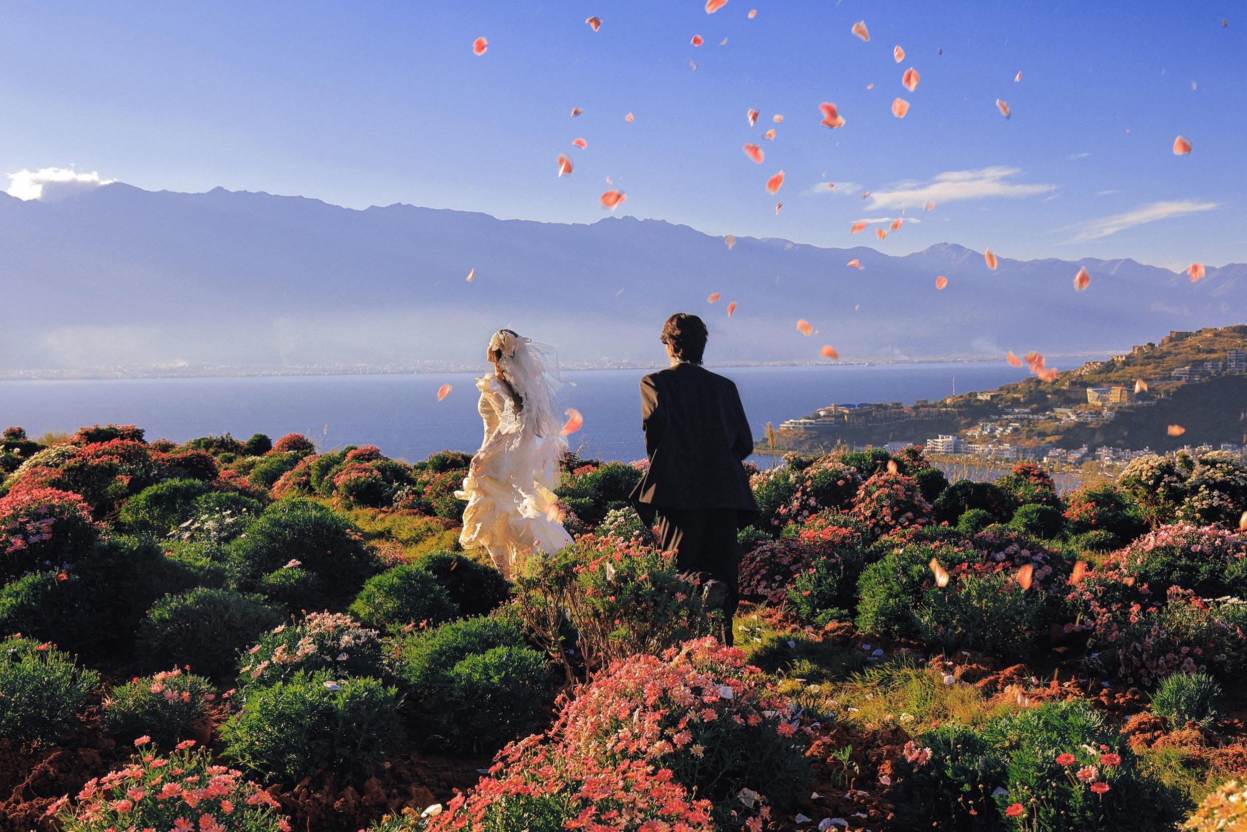 缓缓飘落的枫叶像思念.秋日下的浪漫