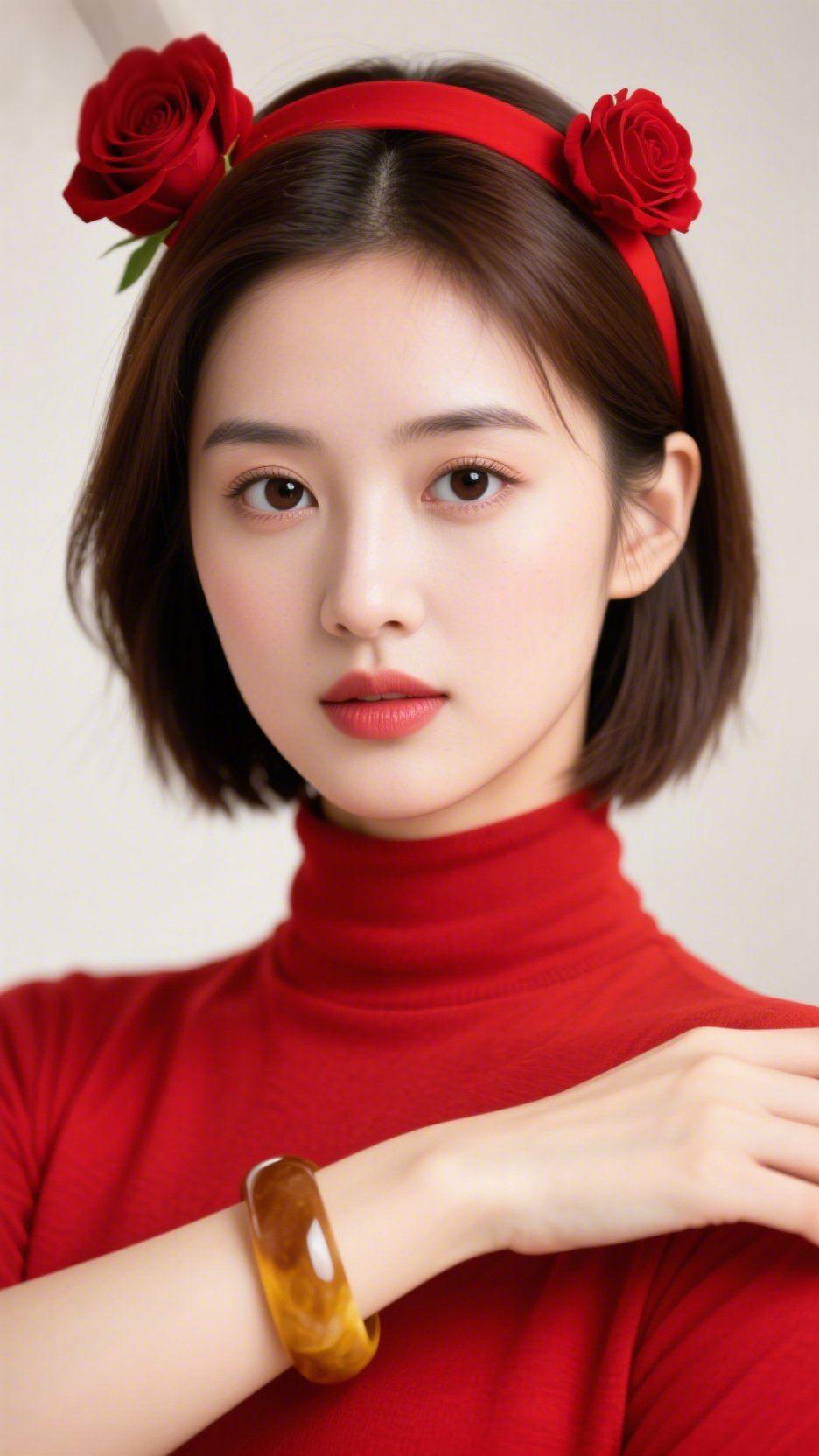 《红玫与暖光》 暖光漫过窗沿时,红衣裹着舒展的肩线,玫瑰发箍垂着软润的香,连腕间的琥珀镯都漾开温软的纹路。 你该遇过这样的时刻吧?空气里浸着轻缓的气息,她抬眼时,唇色是初绽的红玫,眼波里淌着浅溪般的澄澈。指尖轻落肩头的弧度,像风掠过春枝,连光影都跟着柔了几分——这柔里裹着半分舒展、半分明净,是寻常日子里忽然漫开的诗意。 我们总在忙碌里忽略,红可以是鲜活的暖意,而非灼目的热烈;美从不是刻意的雕琢,而是某一刻抬眼时,恰好撞进的、带着生活温度的心动。这心动,是她鬓边的花,是衣摆的红,是藏在烟火里的,柔软的向往。 生活氛围感 日常温柔美学