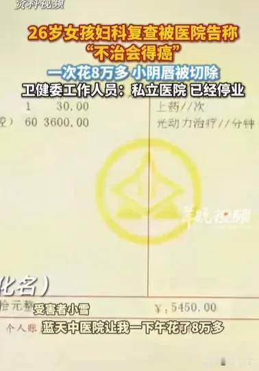 石家庄26岁女孩妇科复检遭坑8万:所谓“防癌手术”,竟是收割女性的骗局 谁能想到,一次普通的妇科复检,竟成了26岁女孩小雪的噩梦。本只是想安心复查身体,却被石家庄蓝天中医院的医生当头泼下冷水:“不做手术就会癌变,甚至影响生育”,惶恐之下,她不仅被劝着做了宫颈赘生物摘除术,还稀里糊涂切了小阴唇,为凑齐8万手术费,无奈向朋友借钱还套了花呗,可术后等待她的不是康复,而是伤口持续的疼痒,连正常如厕都成了煎熬,坐立难安的日子里,她才发现,自己不过是众多被忽悠患者中的一个。 这场看似偶然的医疗纠纷,藏着对患者生命健康的漠视,更戳中了无数普通人就医时的恐惧与无助。小雪并非没做过检查,此前在北京正规医院就诊时,医生仅建议动态复查,无任何癌变风险提示,可到了这家私立医院,简单问诊后就夸大病情制造恐慌,用“癌变”二字拿捏患者的焦虑,甚至主动引导贷款缴费,一步步将人套进消费陷阱。更讽刺的是,事后三甲医院复查显示,小雪根本无宫颈癌相关风险,涉事医院连判断癌症的关键检查都没做,所谓的“防癌手术”,从头到尾就是一场精心设计的骗局。 更令人气愤的是,这样的套路并非个例。有人陪女友做流产手术,本只需千元费用,却被中途加价到4万,仅5支防粘连膜就收1.4万;有人被100元全项检查吸引治男科疾病,承诺5000元能治愈,实际花费超2万却毫无效果;记者暗访时指标全正常,竟也被诊断为盆腔炎,还被极力推销私密整形。这些患者的遭遇如出一辙:夸大病情施压、诱导贷款消费、术中临时加价,用PUA式手段拿捏患者的信任与恐惧,把医疗当成牟利的工具,早已背离了医者仁心的初心。 医疗的本质是救死扶伤,而非趁人之危收割利益。小阴唇整形本只适用于存在明显生理不适的情况,绝非随意切除的“敛财项目”,涉事医院为赚黑心钱,无视医疗规范,无视患者权益,最终被责令停业,算是咎由自取。可这场风波也给所有人提了醒:就医一定要选正规医疗机构,面对医生夸大病情、强制推荐高价项目的情况,务必保持清醒,多找几家医院核实,别让焦虑冲昏头脑,更别让黑心机构有机可乘。 医者仁心是底线,就医安全是刚需。你身边是否也听过类似的医疗骗局?面对陌生医院的夸张诊疗建议,该如何避坑?欢迎留言分享你的看法和经验~ 社会百态 免费体检骗局 免费肿瘤筛查 妇科医院套路